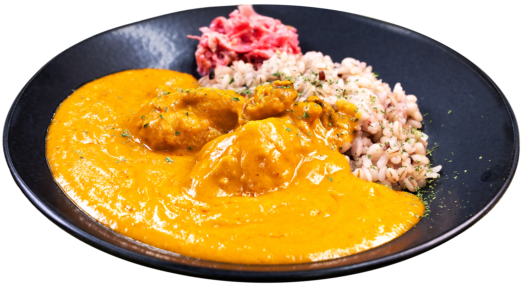 厳選したチキンに合う味わいを研究し、オリジナルブレンドした8種のスパイス(クミン・コリアンダー・陳皮・カルダモン・パプリカ・フェンネル・黒胡椒・赤唐辛子)をじっくり焙煎しバター、ソテーオニオン、トマトペーストをベースにローストカシューナッツの香ばしさを加えオリジナルカレーに仕上げました。チキンのうま味とオニオンの甘み、トマトの甘酸っぱい味わい、さらにバターのコクが加わった味わいは、世代を問わず「美味しい!」と言っていただける間違いなしの商品です。