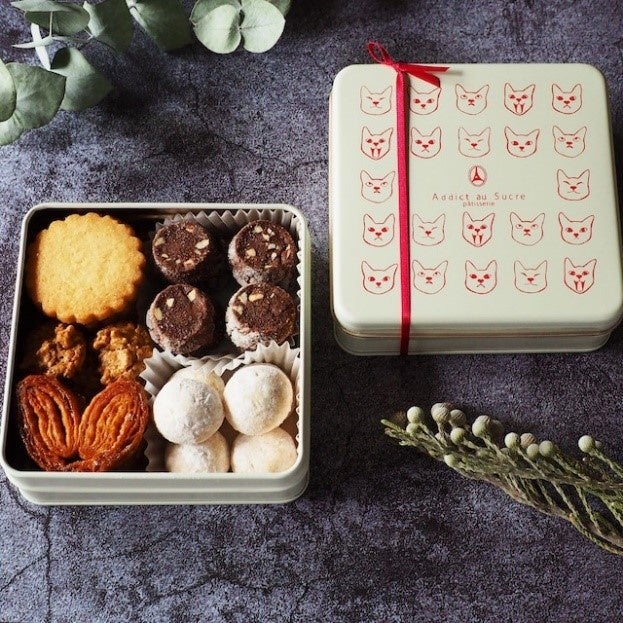 オーナーシェフの愛猫をモチーフにしたデザイン缶に6種の焼き菓子が入ったクッキー缶です。