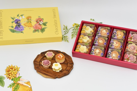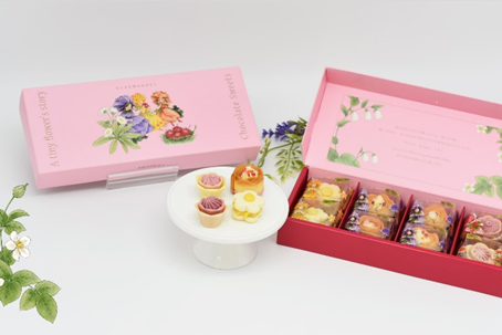 ベルギー産のチョコレートを使用した、三姉妹のお花をモチーフにしたお菓子を贈り物にしました。