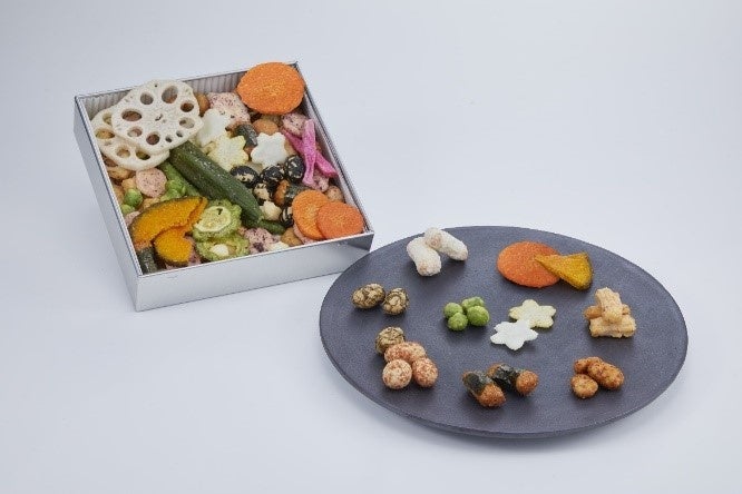 オクラやニンジン、赤だいこんなどの野菜チップスが色とりどりに映える、美味で美しい”しょっぱい缶”。