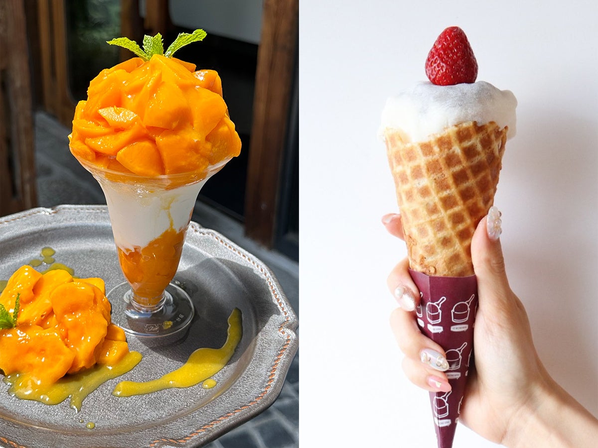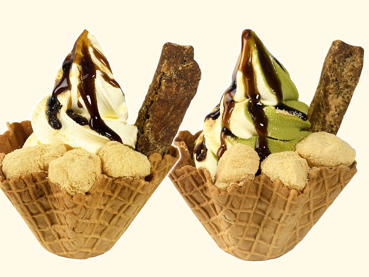 あいぱくTOKYO初登場!香川県高松市のアイス専門店『アイスビストロヒライ』が手掛ける贅沢なハイブリッドソフトクリーム!オーダーを受けてから、その場で焼いて提供するコーンは香ばしくてカリッカリの食感!いちご大福のおいしさをソフトクリームで再現した”いちご大福”も登場。その他、一玉まるまる使った『国産完熟マンゴーパフェ(4,000円 ※写真左)』も1日20食限定にて販売!夏だからこそ味わえる特別な体験をしたい方におすすめ!