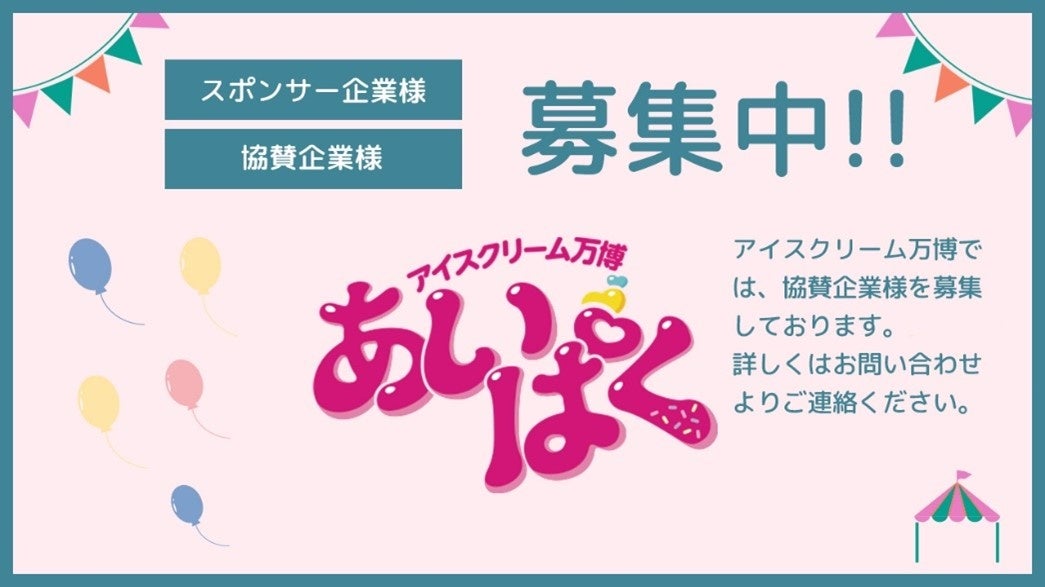 この度、イベントの成功と充実した内容の提供を目指し、協賛企業を募集しております。ブース出店はもちろん、約564インチ(W12.5m×H7m)の4K大型ビジョンでのCM放送、サンプリング、公式HPバナー掲載、看板パネルへのロゴ掲載など、さまざまな協賛プランをご用意しております。アイスクリーム業界のみならず、幅広い分野の企業様との連携を通じて、イベントを新たな価値創造の場とし、参加者に一層の感動を提供したいと考えております。
