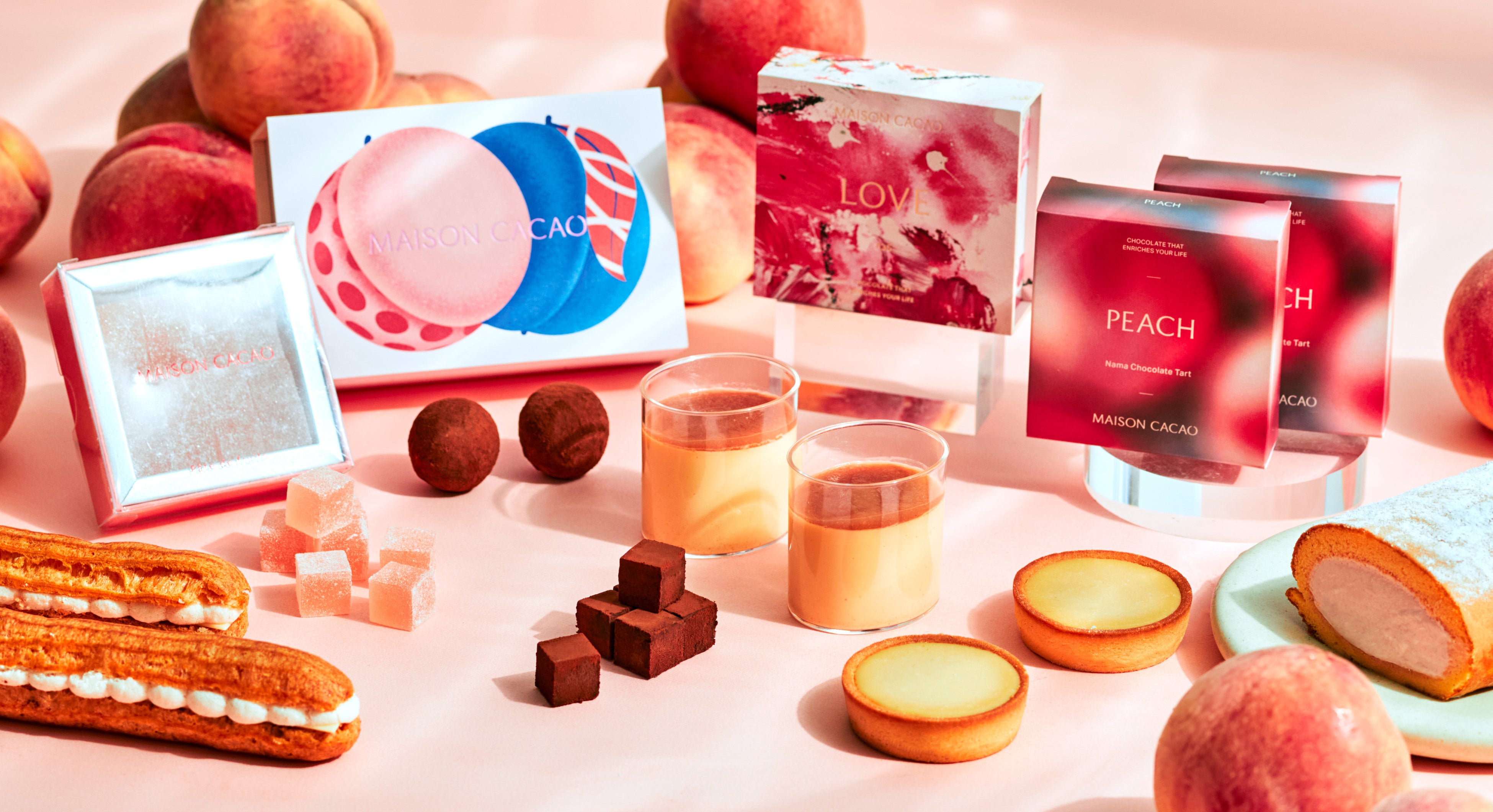 鎌倉発祥の「メゾンカカオ」(アロマ生チョコレート専門店、創業者:石原紳伍)は、今年4年目となる人気の”白桃コレクション”より、品種ごとに異なる白桃の味わいを満喫できる8種の白桃スイーツを発表します。山梨県山梨市、日本一の桃生産量を誇る恵まれた環境で、自然と向き合い手間をかけ、20品種近くの桃を栽培する笠井農園。白桃と一口に言っても多様な品種があり、色味・香り・硬さ・甘さとその個性は大きく変わります。「旅するメゾン」を通して、その時期の最高峰の素材を農家から直接お譲りいただくメゾンカカオならでは、今年特に美味しく最旬を迎える4種の白桃を使用した新提案です。7月1日〜8月31日の期間限定で登場。
