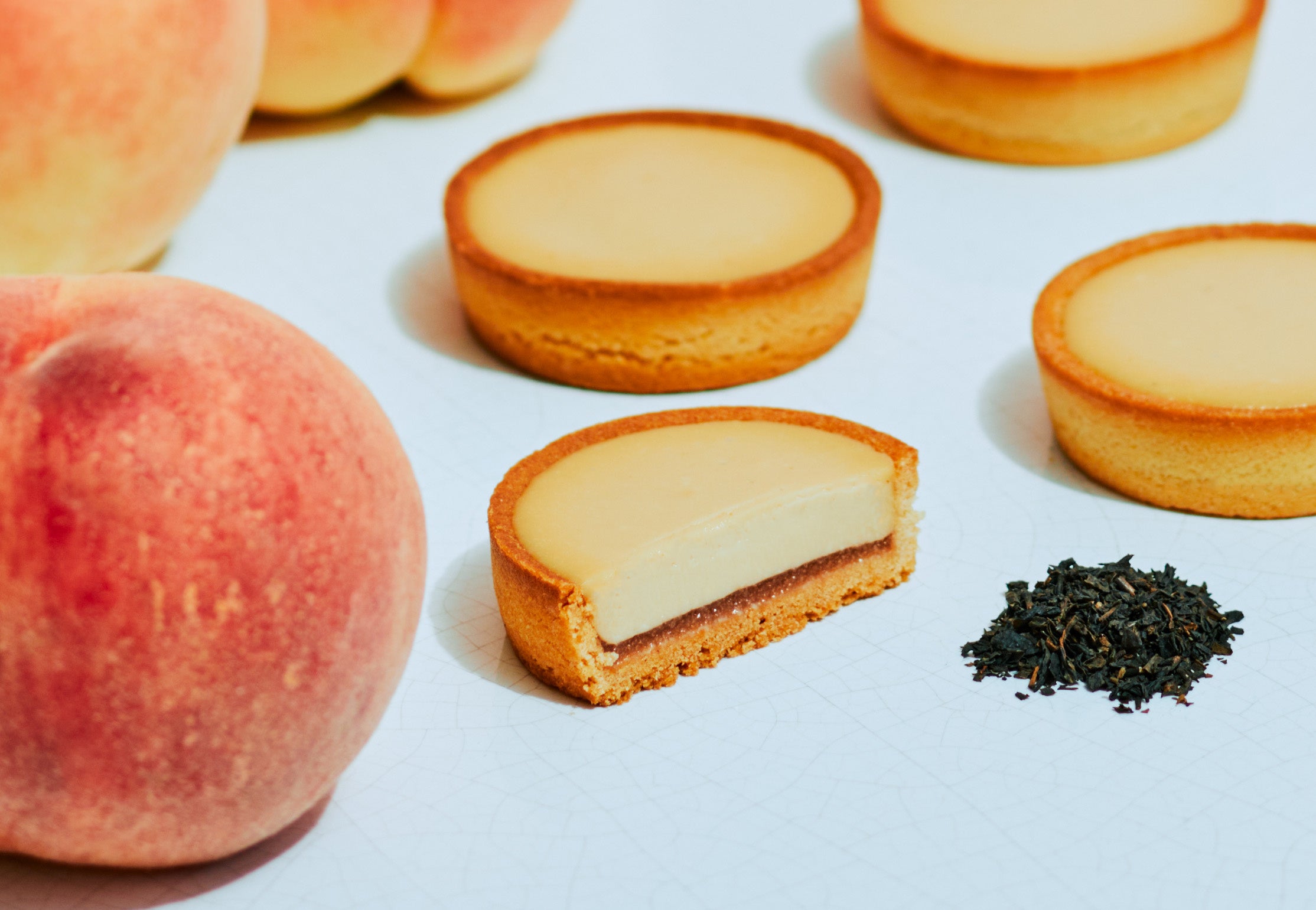 食感の良い手焼きタルトの中に、煮詰めた濃厚な”日川白鳳”のソースと、ホワイトチョコレート・アールグレイと合わせた軽やかで華やかな白桃生チョコクリームを流し入れました。