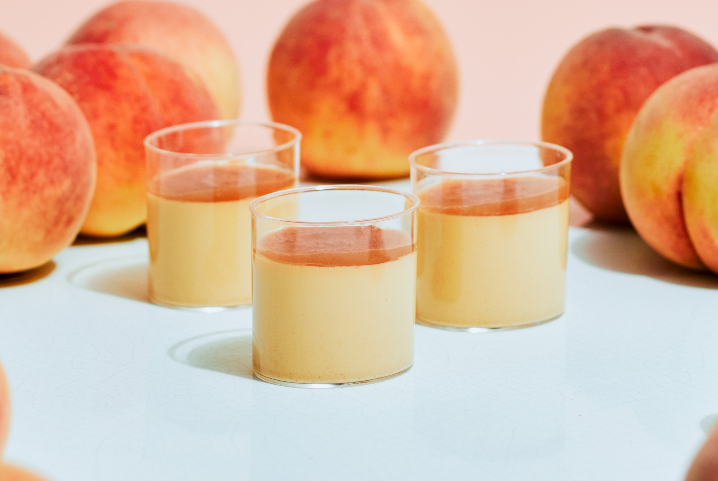 瑞々しい”日川白鳳”をそのままあらごしのピューレにし、同じく白桃を使用したなめらかなプリンと合わせました。