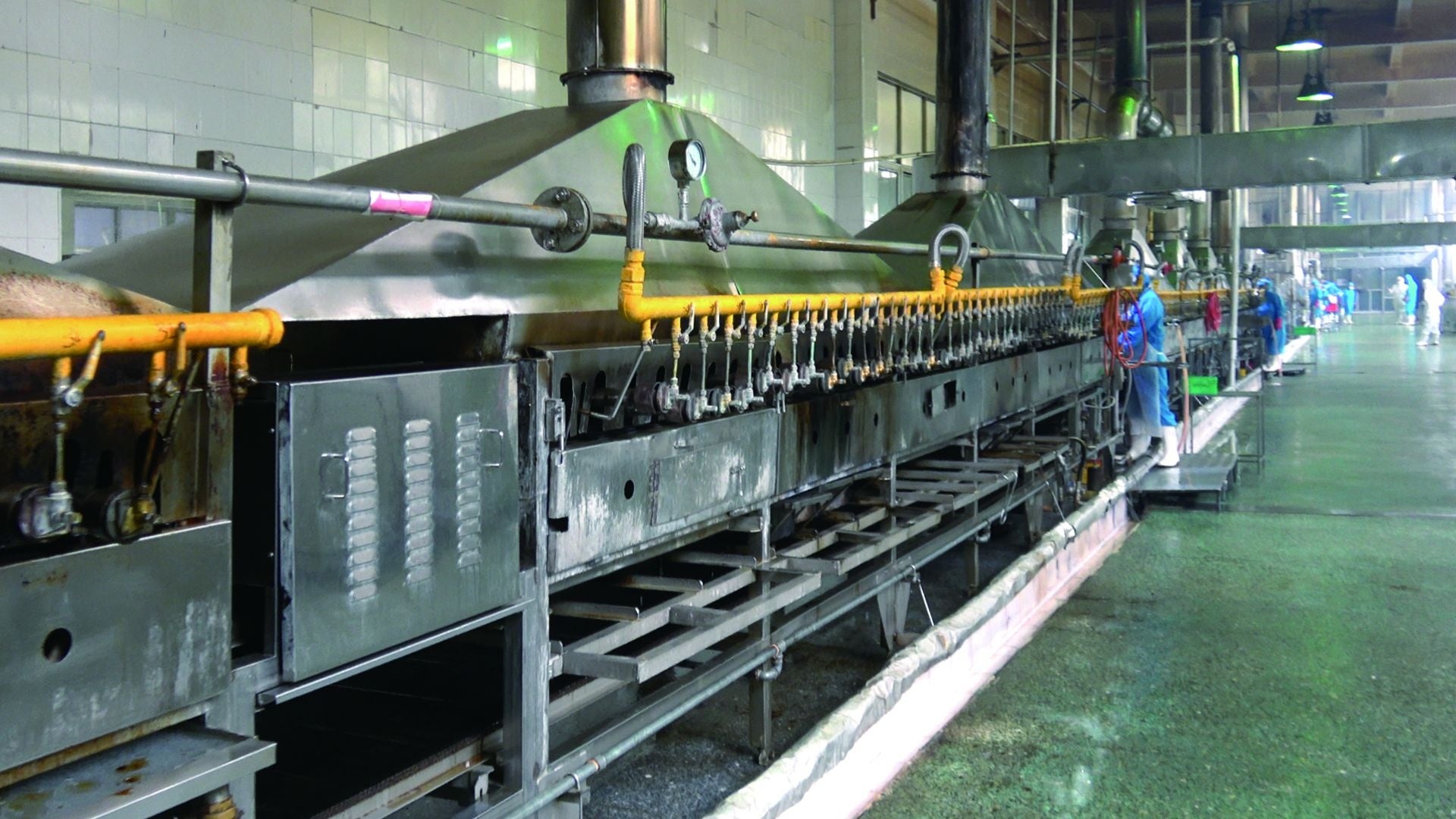 ▶ラインの全長はなんと100メートル以上!巨大な専用レーンでじっくりと蒸し・焼きの作業を行います。