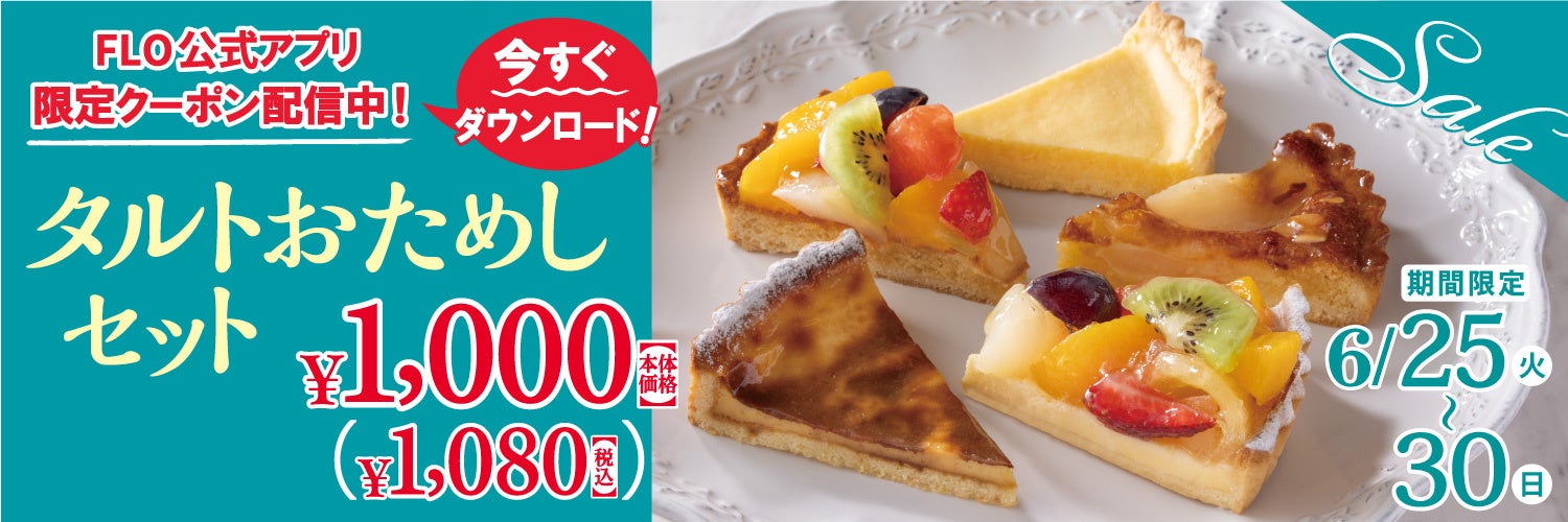 6月25日(火)~30日(日)には、FLOで人気のタルトを詰め合わせた「タルトお試しセット(5個入り)」が“税込410円引き”になる超お得なクーポン配信キャンペーンを開催します。