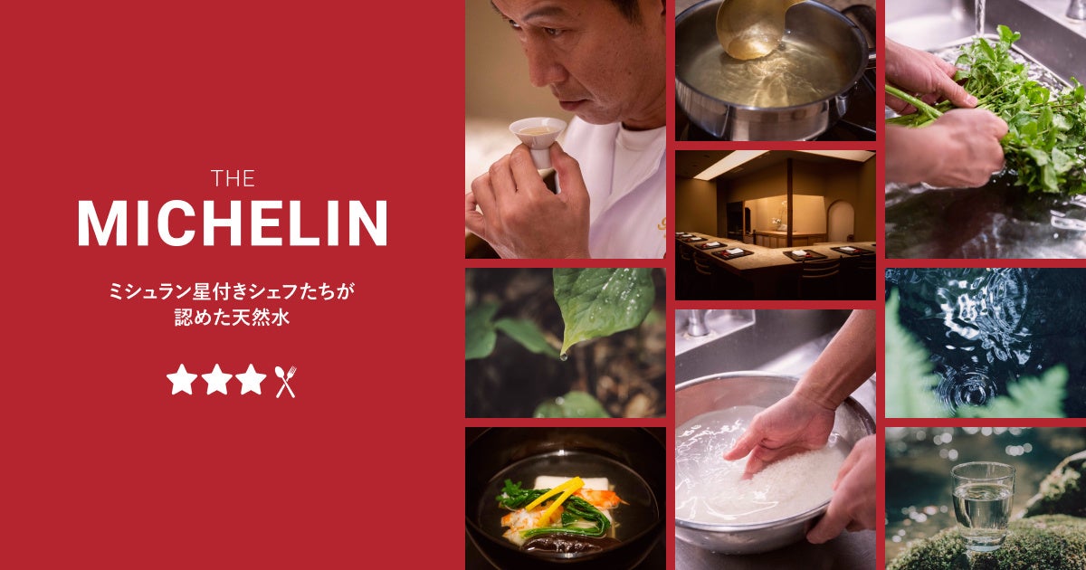 プレミアムウォーターは、これまでミシュランガイドにて星を獲得してきたシェフの方々から認められた天然水。おいしさにこだわりを持ち、独自に設けた厳しい基準をクリアした天然水は、ちょうどよい柔らかさとミネラル感を感じることができ、毎日でも飲みたくなるおいしさと高く評価をいただきました。実際にミシュラン星付きシェフのお店でも、料理にプレミアムウォーターの天然水を採用いただくほど、そのおいしさや品質を評価いただいております。