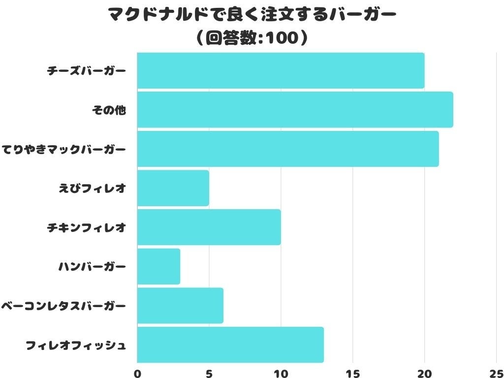 マクドナルドで良く注文するバーガーをアンケートにて調査したところ、1位は「てりやきマックバーガー」でした。