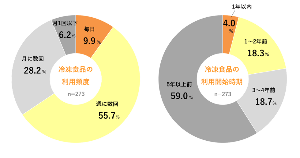 また、冷凍食品を利用し始めた時期は「5年以上前」が約6割を占めた。自宅で過ごす時間が増えたコロナ禍よりも前から、冷凍食品の利用は食卓に定着していたことが伺える。