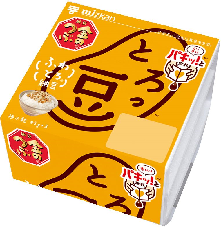 「金のつぶ パキッ!とたれ とろっ豆」は、フィルムやたれ袋が無い「パキッ!とたれ」を採用し、パキッ!とふたを割るだけでまろやかなたれをかけることができる、とろけるくらいやわらかい豆とふわふわの糸引きが特徴的な納豆です。