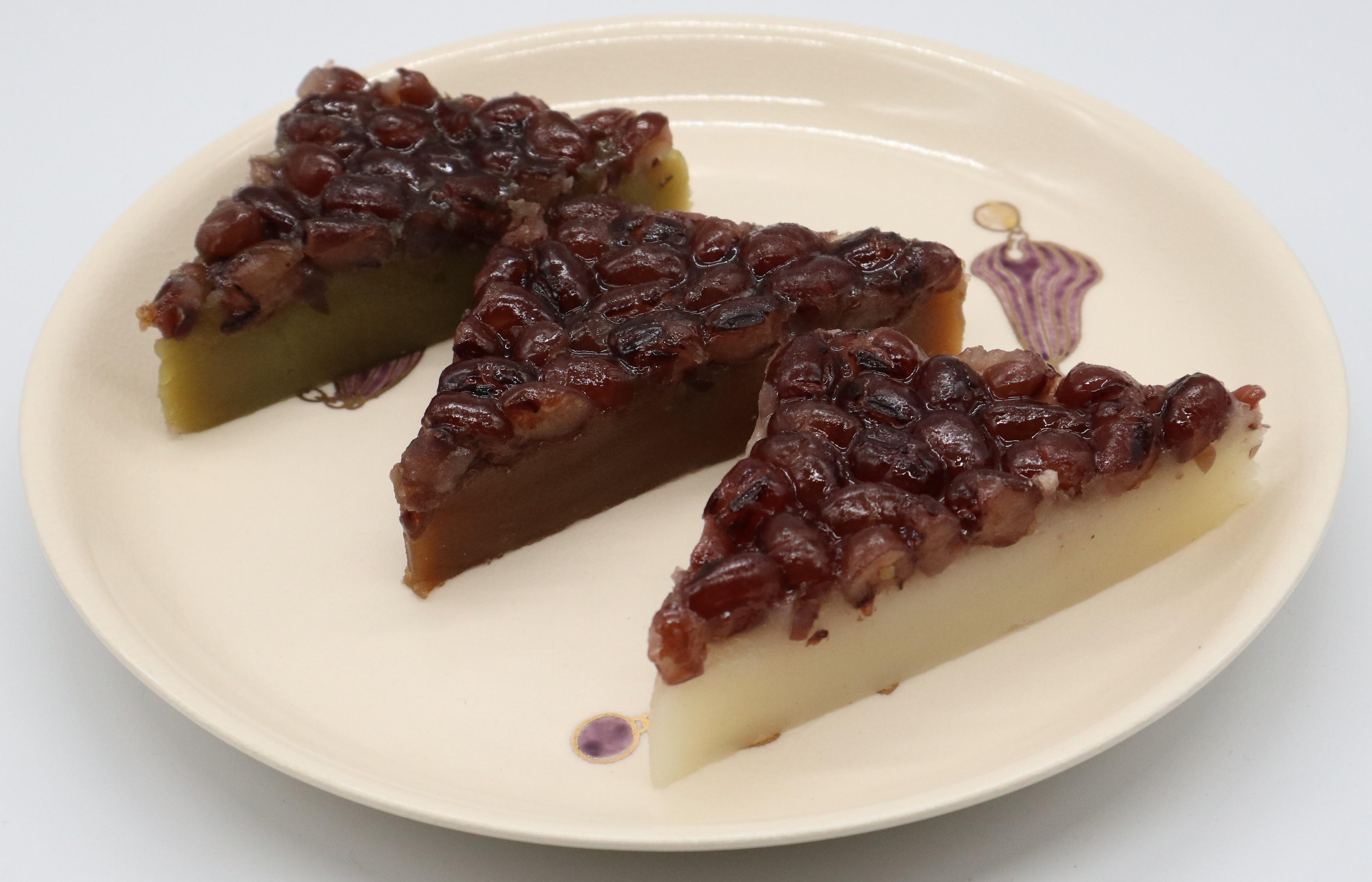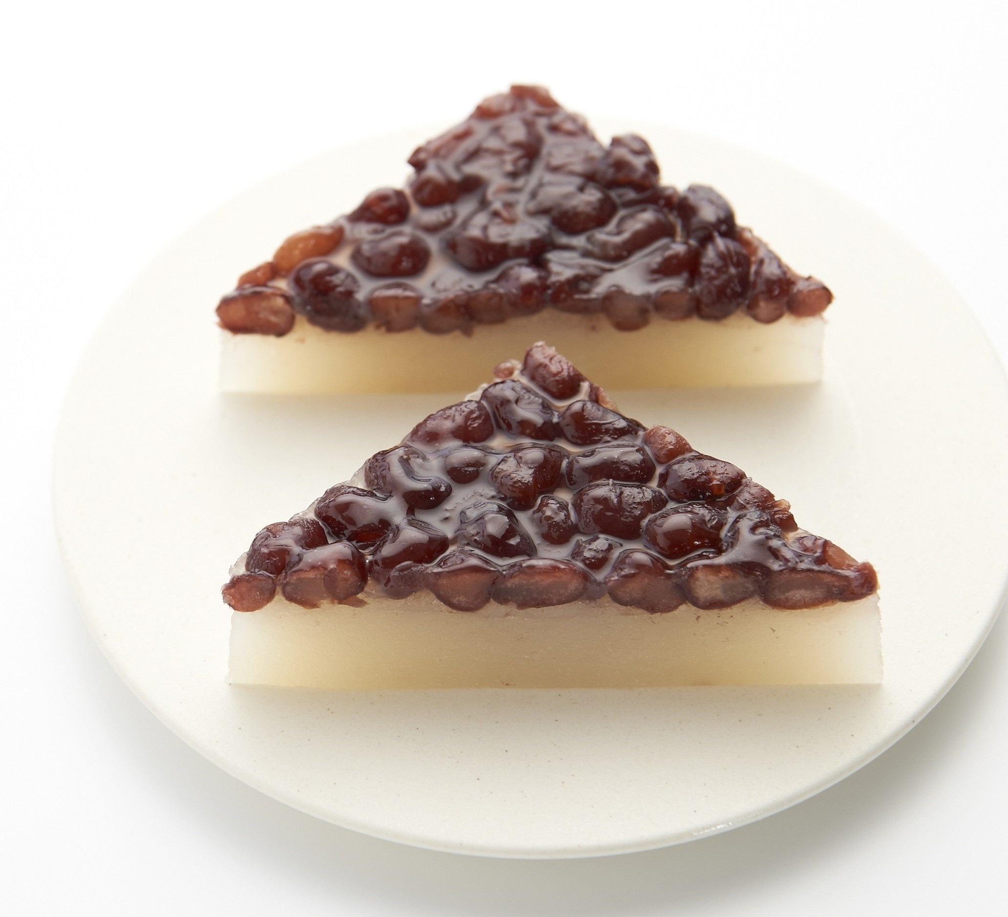 三角にかたどったういろう生地に、小豆をのせた和菓子。無病息災を気がした一品です。