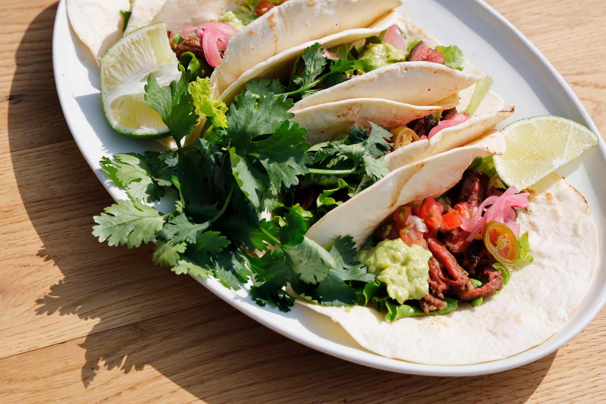 スパイスと果汁に一晩かけて漬け込み、やわらかく仕上げをした牛ハラミをメインに、トマトやオニオン、ハラペーニョをあわせたオリジナルソースとワカモレを一緒にトルティーヤで挟みました。パリッとした食感とジューシーな肉の味わい、うま味のあるソースとお酒がマッチした一品。
