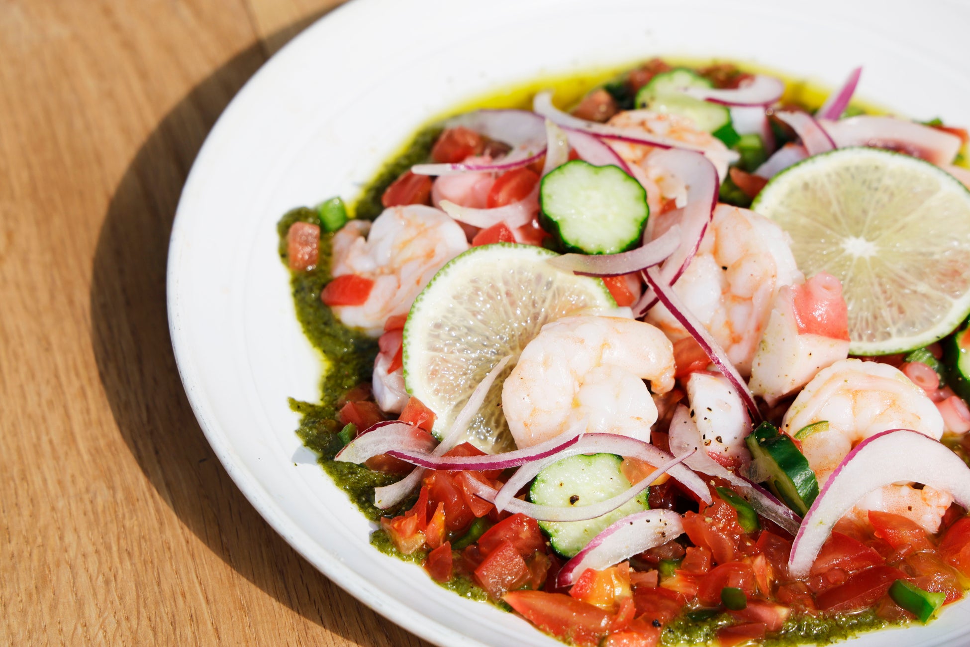 トマトやキュウリなどの夏野菜に、エビとタコを合わせた見た目もカラフルなセビーチェ。口にひろがるパセリの香りとさっぱりとした酸味、それぞれの魚介のプリっとした冷たい食感が、日差しを浴びて熱くなったカラダを内側からやさしくクールダウンさせてくれる一品。