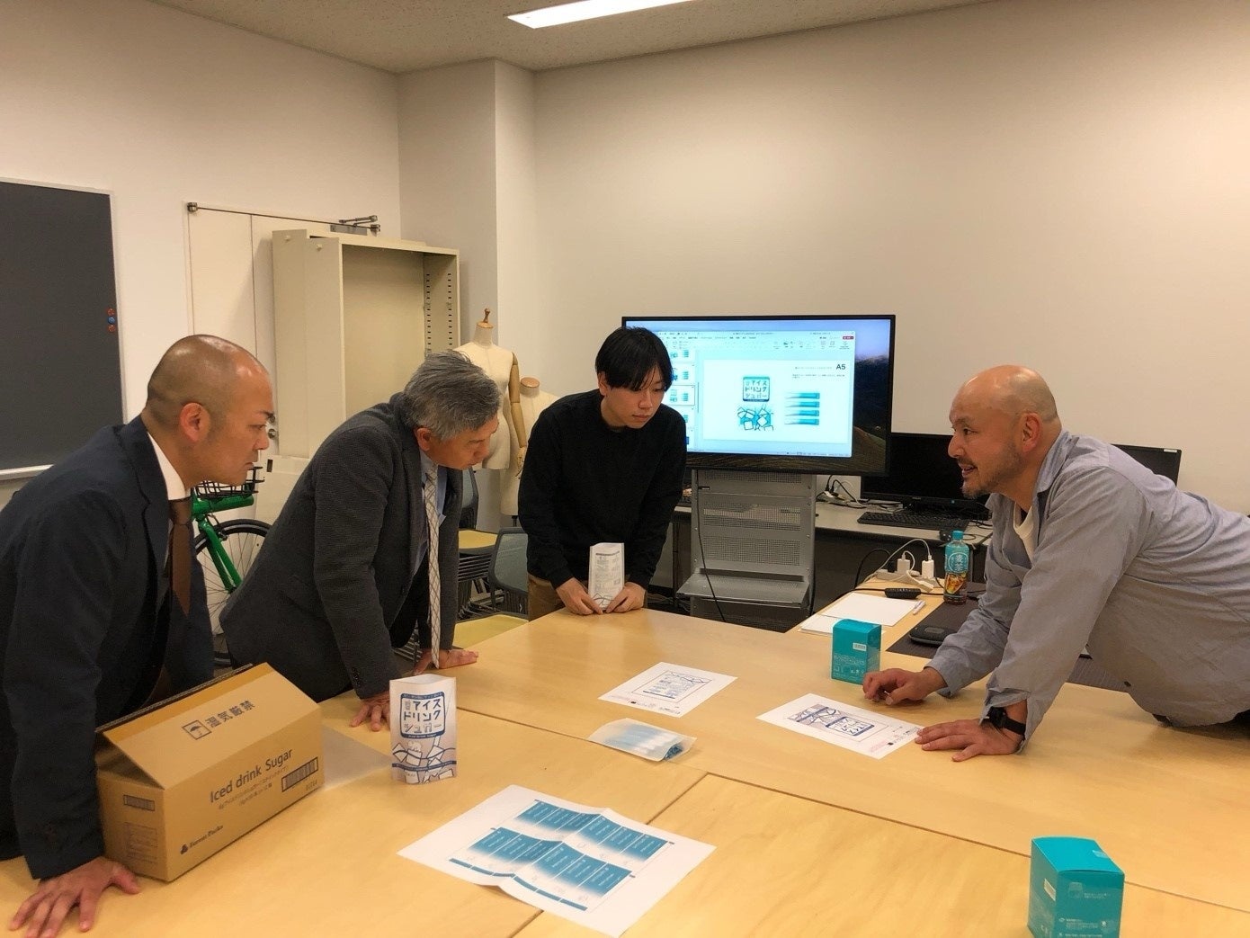本取り組みは、東大阪市の「近畿大学との産官学連携プロジェクト」の一環として、企業活動の要となる商品開発や商品企画を実施するもので、株式会社フォレストパックスから近畿⼤学に新しいパッケージデザインの依頼があり、文芸学部文化デザイン学科のプロダクトデザインゼミが担当しました。