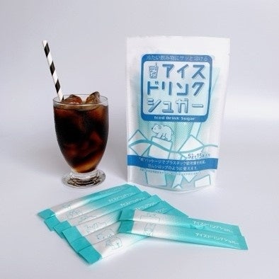 「アイスドリンクシュガー」は冷たい飲料にもよく溶ける顆粒状の砂糖で、紙で包装できるためシロップのポーションカップのようなプラスチック容器が要らず、賞味期限もない非常にエコな商品です。