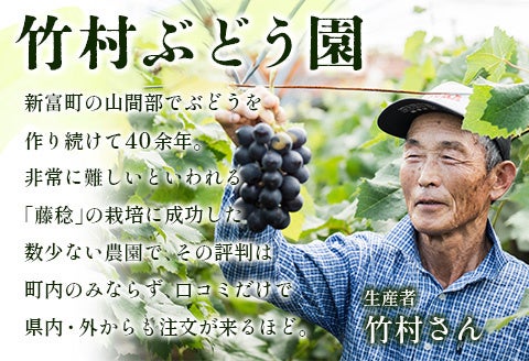 □返礼品名:<先行予約>竹村ぶどう園の種なしぶどう「藤稔」計2kg以上(3~4房)
