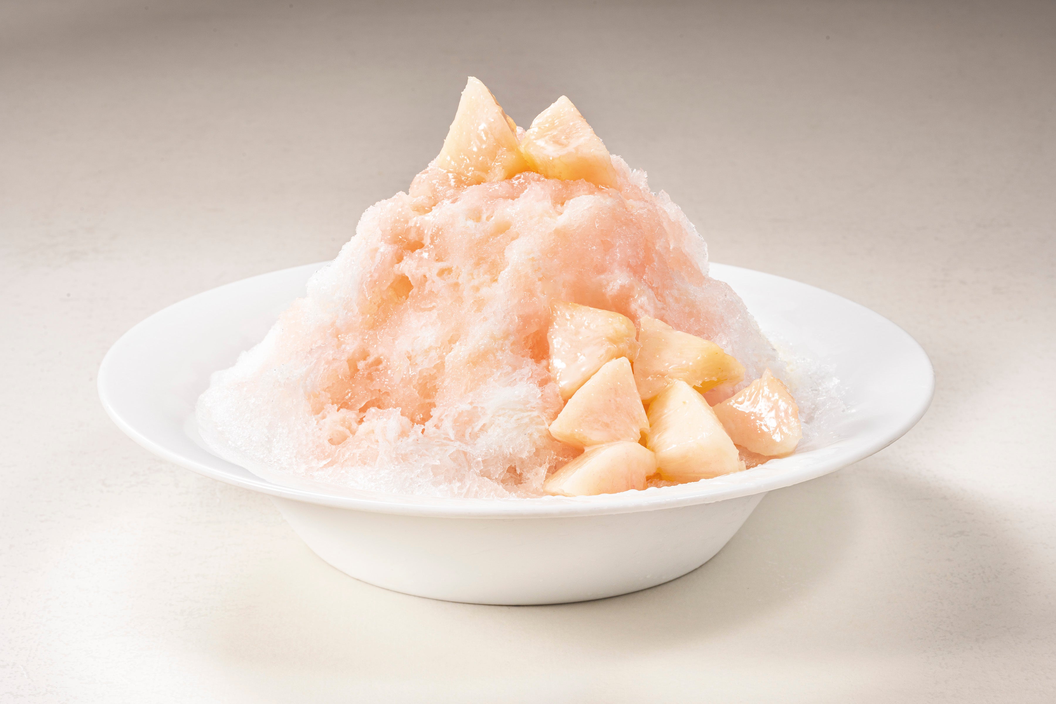 ふんわりとしたかき氷に、ほんのり桃色のピーチソースをとろ~りとかけて、みずみずしい桃をトッピングしました。大きめにカットしたフレッシュな桃をごろごろのせた、ご褒美気分のかき氷。風味豊かなピーチソースと甘い練乳は、大人にはどこか懐かしく、お子さまにも親しみやすい、やさしい香りと甘さが魅力です。
