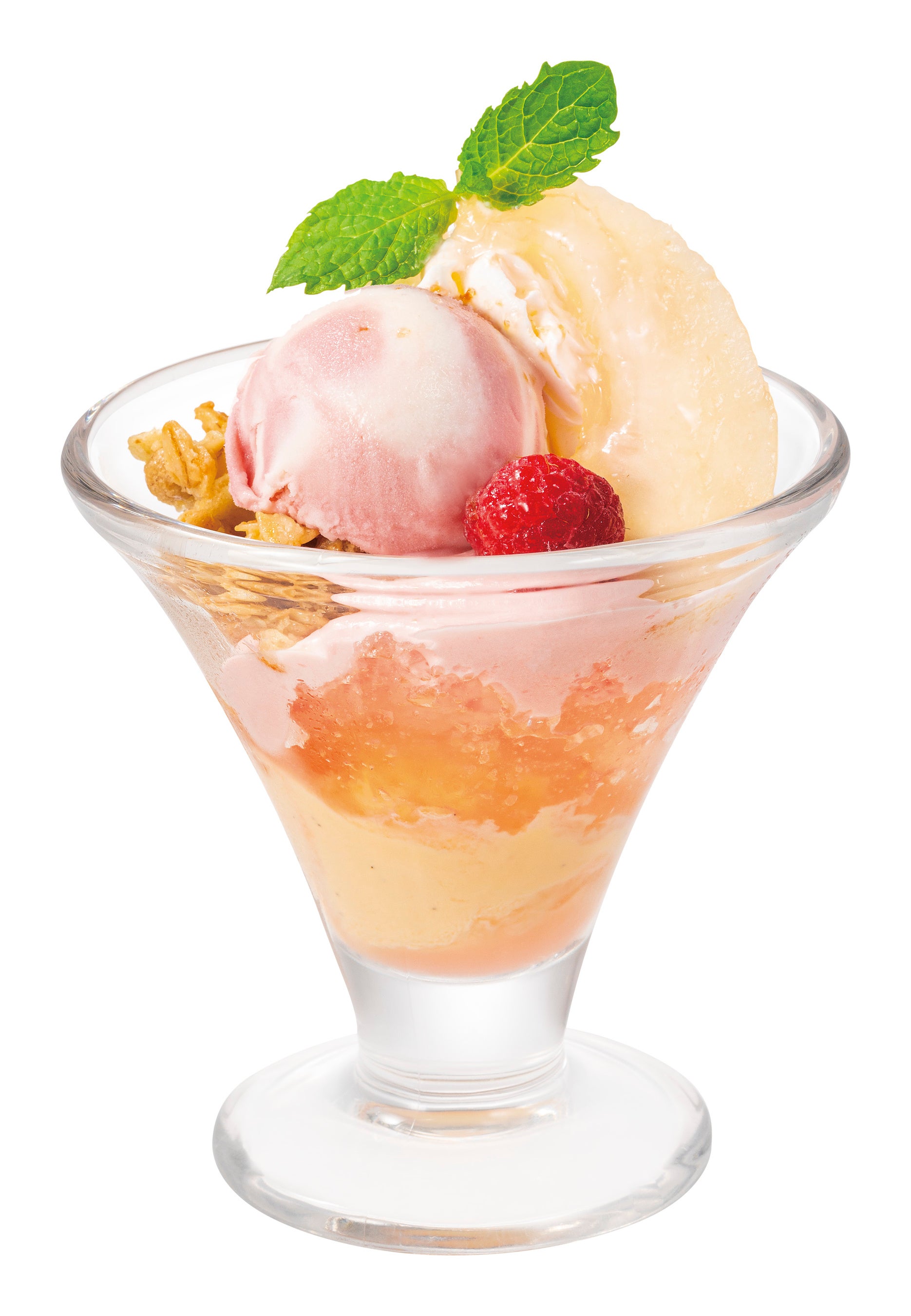 フレッシュな桃と、まろやかな桃クリーム、すっきりした甘さのピーチゼリーなど、食べやすいサイズでも桃の魅力をしっかりと感じていただけます。甘酸っぱいラズベリーチーズアイスやバニラアイスも加わって、すっきりとした味わいなので、ちょっとだけ甘いものが食べたいときや、食後のデザートにもぴったりです。