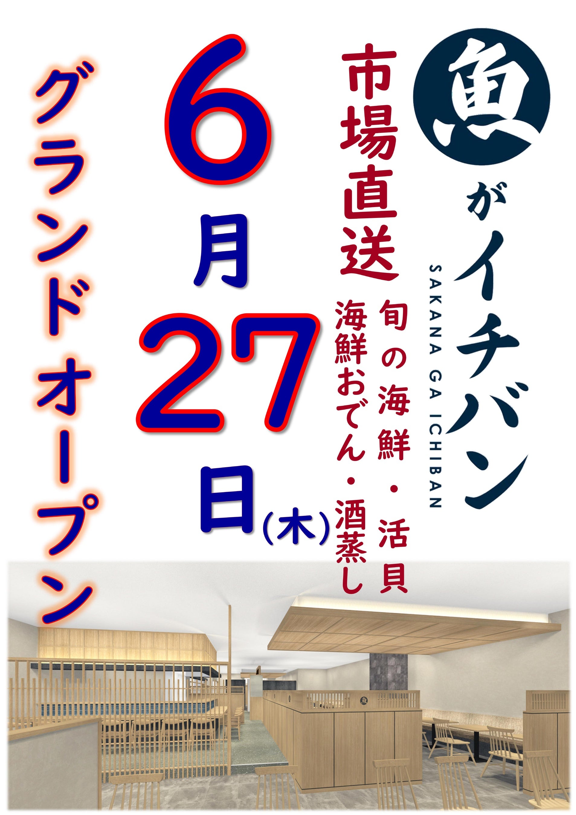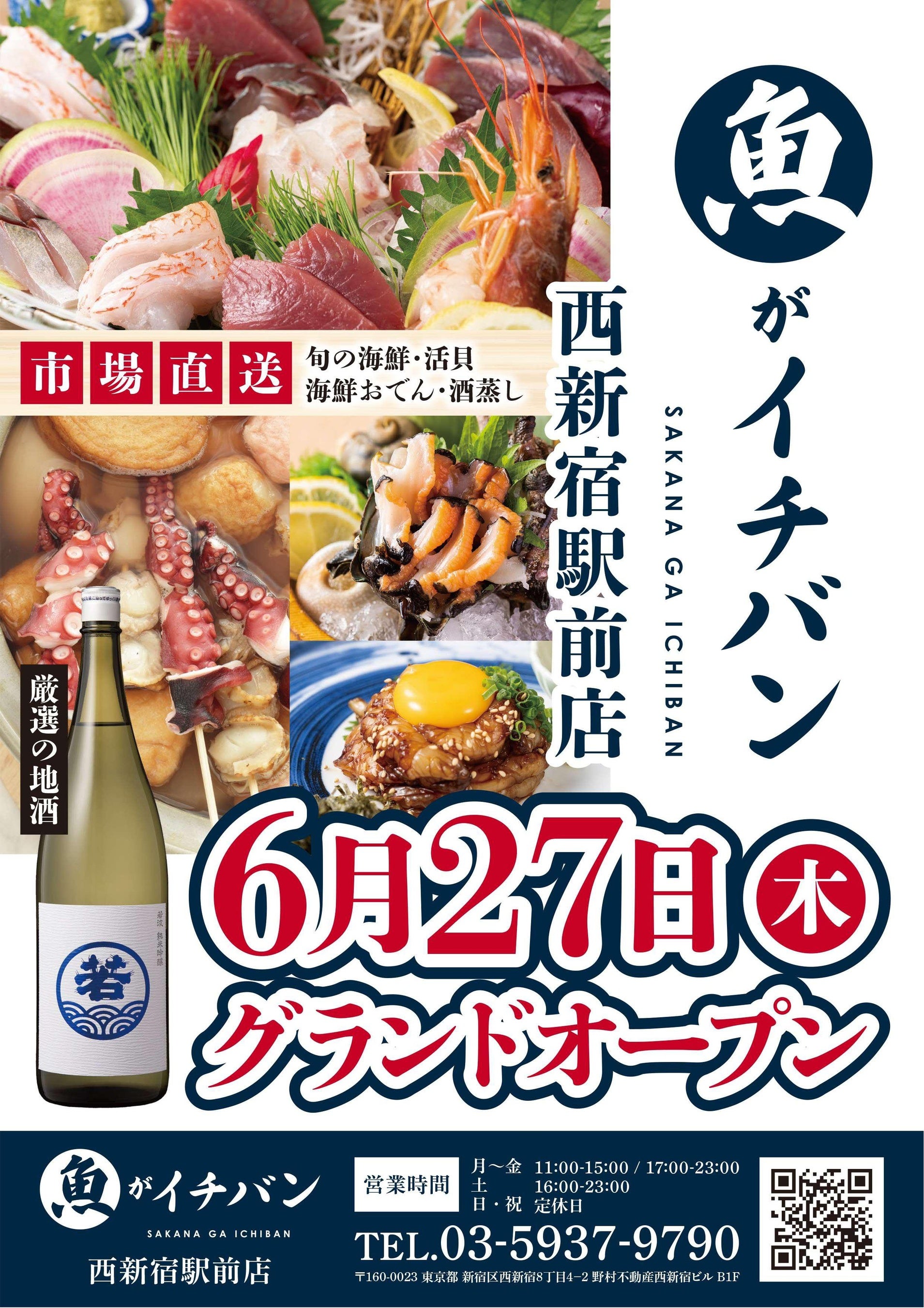 「魚がイチバン 西新宿駅前店」6月27日(木) グランドオープン!!