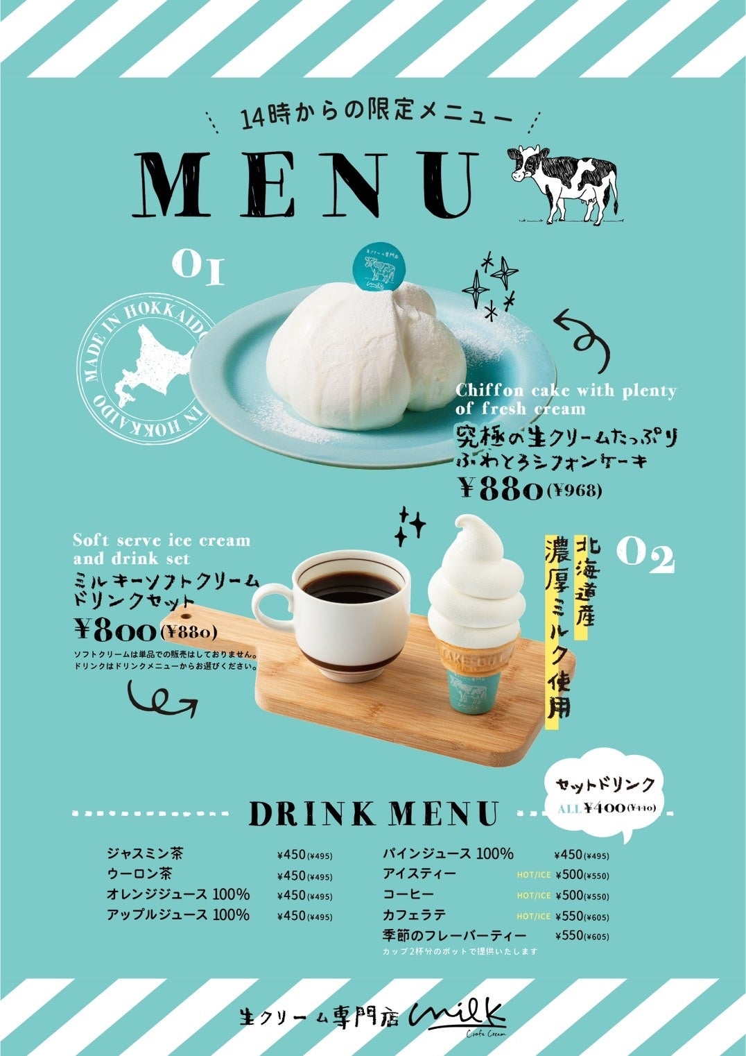 ミルキーソフトクリーム ドリンクセット 880円(税込)