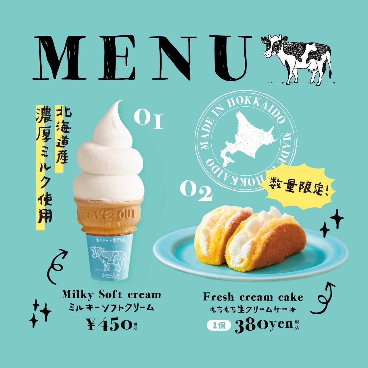 星川店では、暑いシーズンに圧倒的人気の「ソフトクリーム」と名物の「生クリームケーキ」がテイクアウトで楽しめます。また、店内イートイン専用メニューで「究極の生クリームたっぷりふわとろシフォンケーキ」をご用意。店内イートイン利用できる生クリーム専門店は日本全国で唯一星川店のみとなります。ぜひこの機会をお見逃しなく!