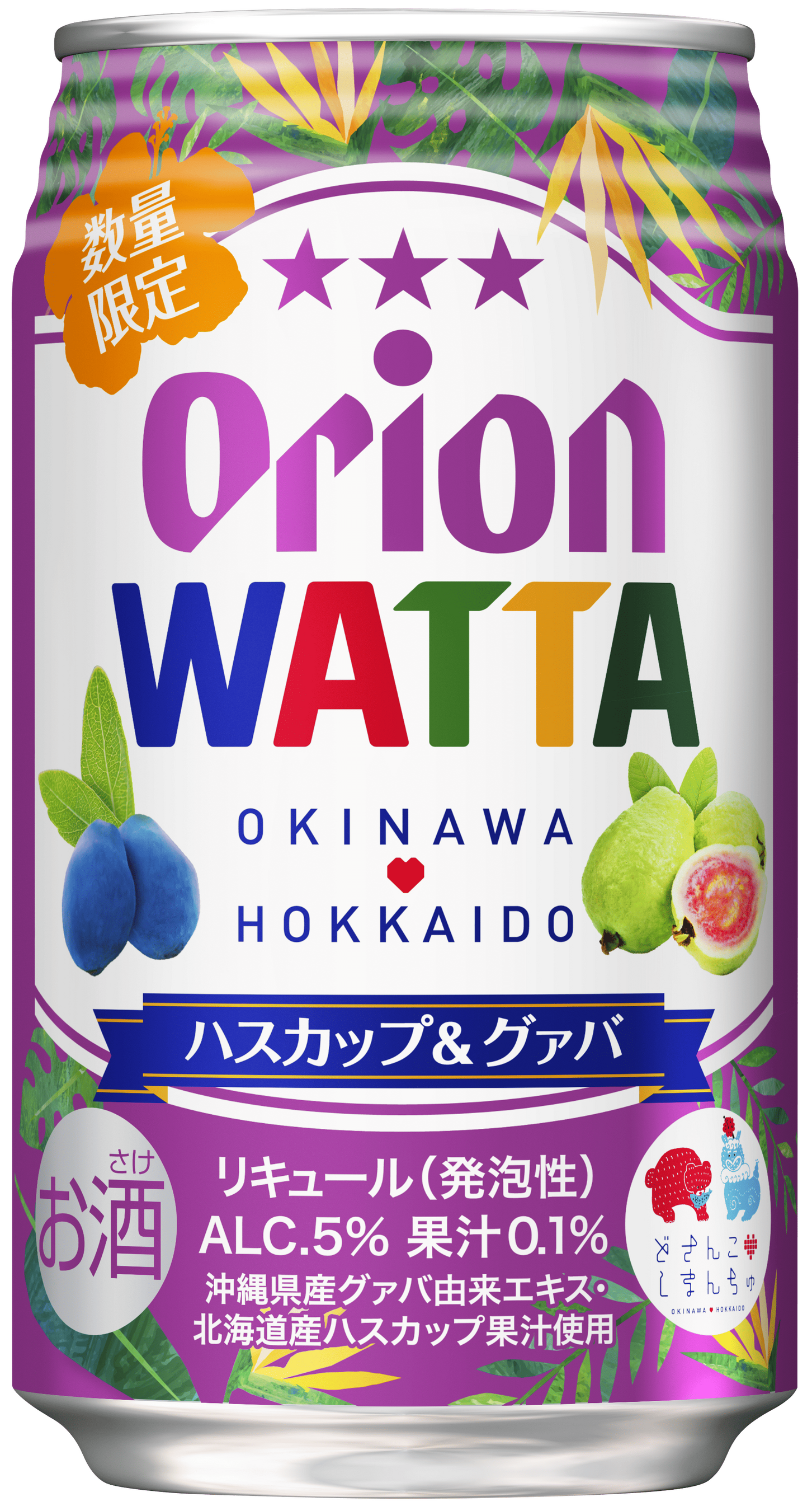 今回のWATTAの限定フレーバー「オリオン WATTA ハスカップ&グァバ」は、北海道と沖縄が力を合わせて日本を元気にする地域創生プロジェクト「どさんこしまんちゅプロジェクト」とのコラボレーションから誕生した第2弾商品です。「オリオン WATTA ハスカップ&グァバ」は、夏に旬を迎える北海道のハスカップと、沖縄のグァバをかけあわせることで、ハスカップの“爽やかな酸味”が、グァバの“トロピカルな甘味”を引き立てます。相性抜群の北海道と沖縄の夏の旬を代表するフルーツの組み合わせから生まれる、さっぱりとした甘酸っぱさとフルーティーな香りが楽しめる、果実感あふれる味わいをぜひご堪能ください。