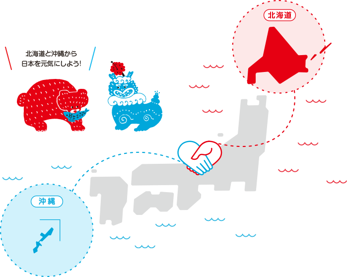 どさんこしまんちゅプロジェクトは、日本の端(北海道)と端(沖縄)で力を合わせて、