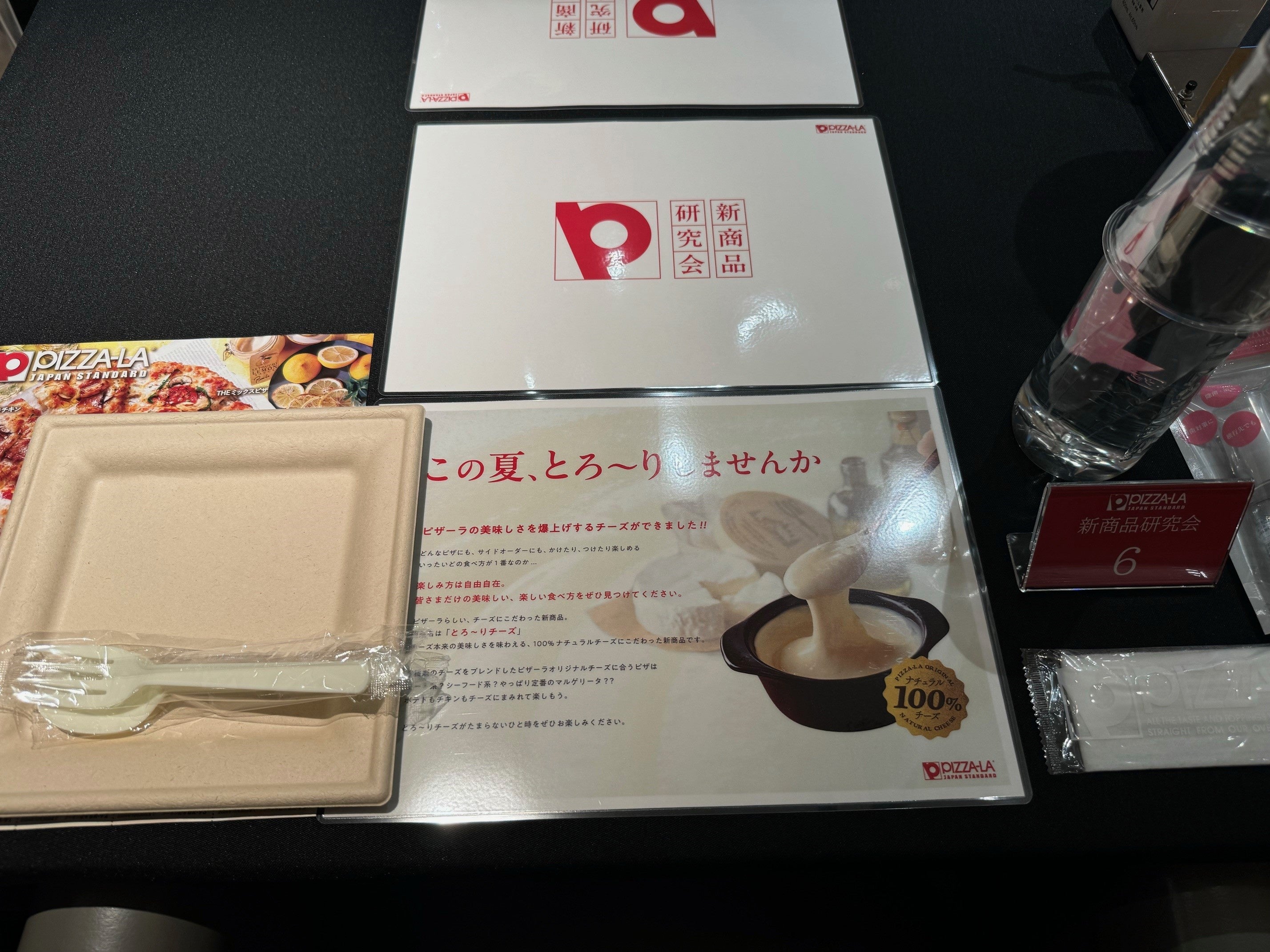 今回、美味しい・楽しい食べ方を研究するため、会場には数種類のピザとサイドメニュー、ピザーラオリジナルの添付物(EXオリーブオイル・きざみのり、ハチミツなど)をご用意し、意見交換をしました。