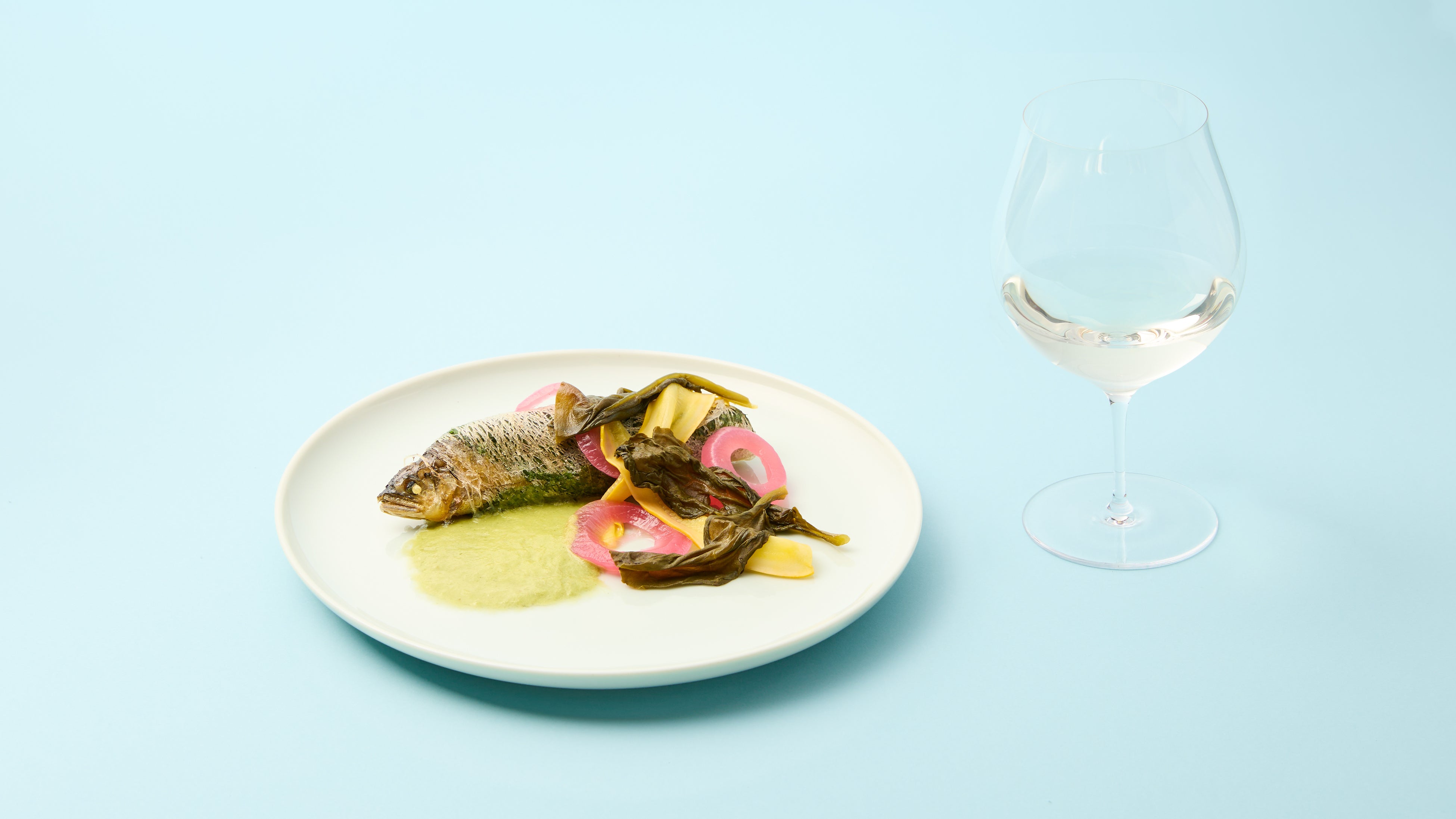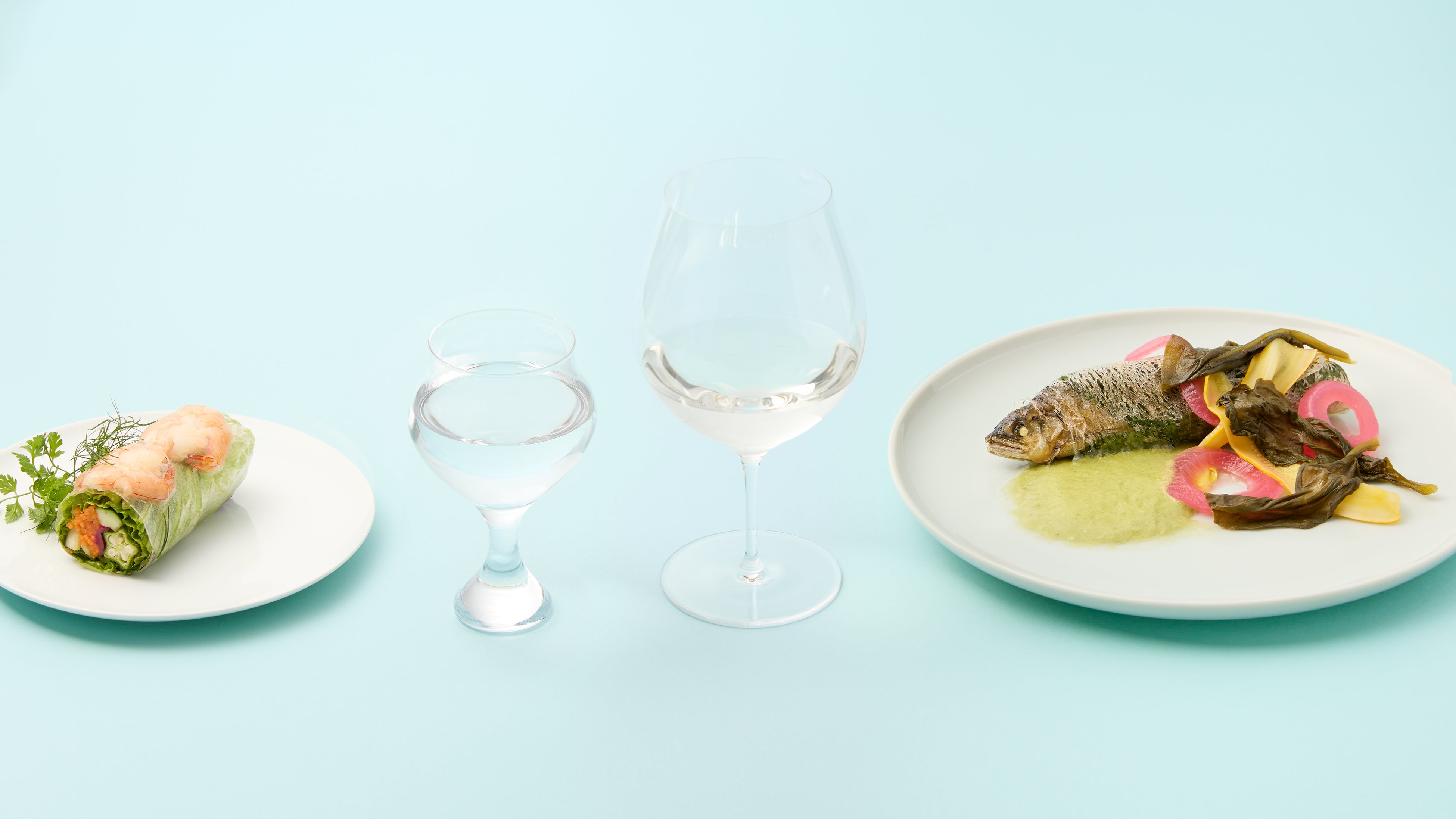 「語蛍」の魅力である“水本来の上品な甘味”を引き立てるために、仕込み水である宮川の水にまつわる食材を集めて構成された、特別なペアリングコースを用意しています。