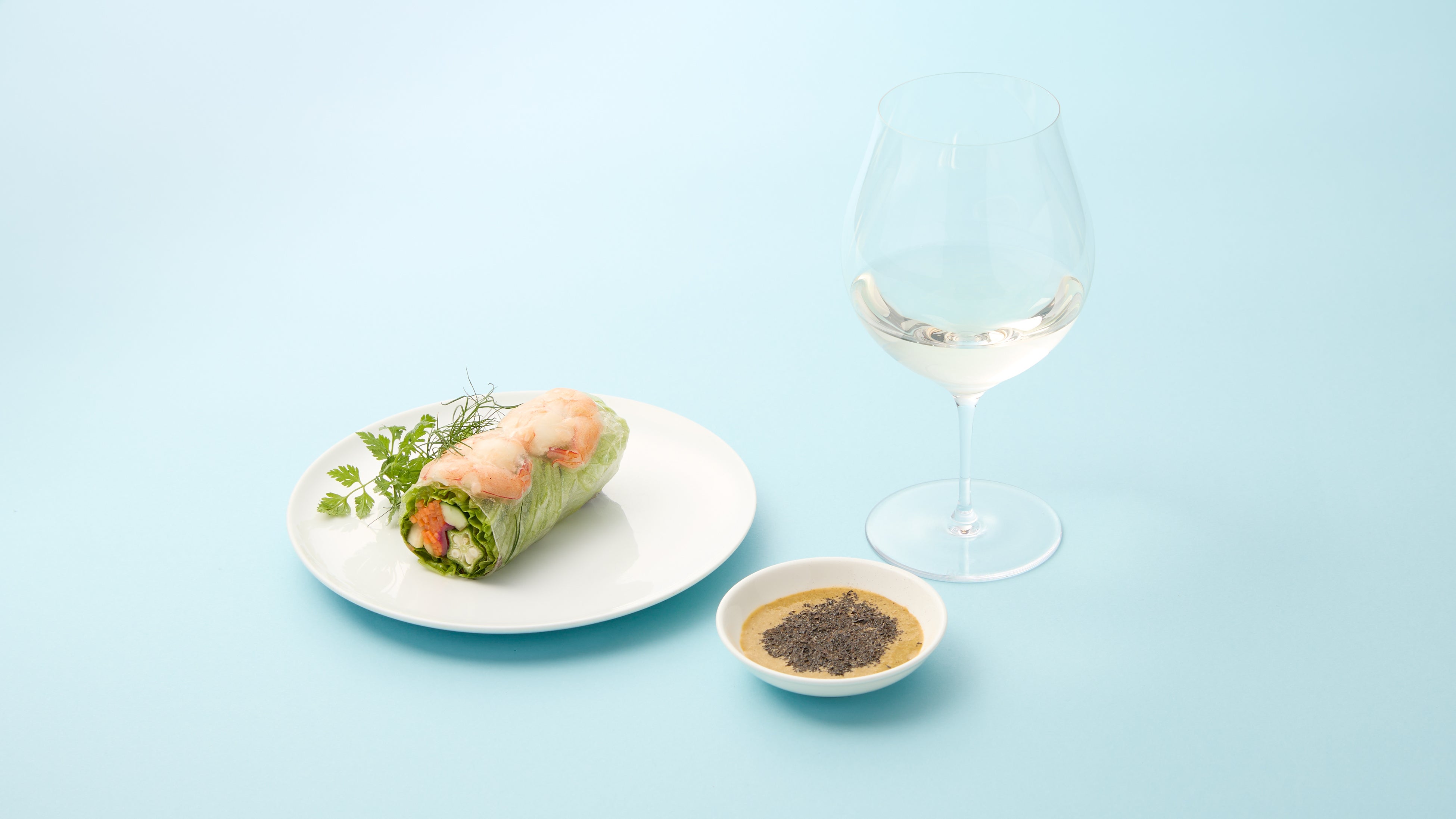 2. 海老の生春巻き 大台町産茶葉と練乳のソース