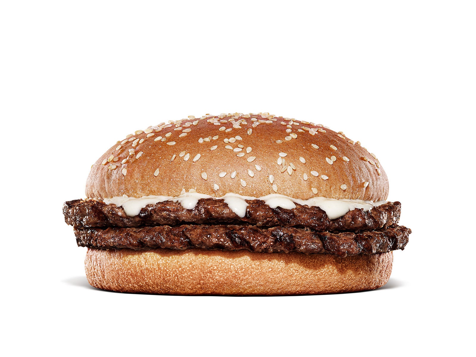 『グリルド・ビーフバーガー』は、バーガーキング® 自慢の直火焼きの100%ビーフパティ2枚に、パルメザンチーズとカマンベールチーズを合わせたホワイトチーズソースで仕上げました。バーガーキング® 最大の特長である、ジューシーで香ばしい、直火焼きの100%ビーフパティを最大限美味しく味わえるシンプルな本格バーガーです。