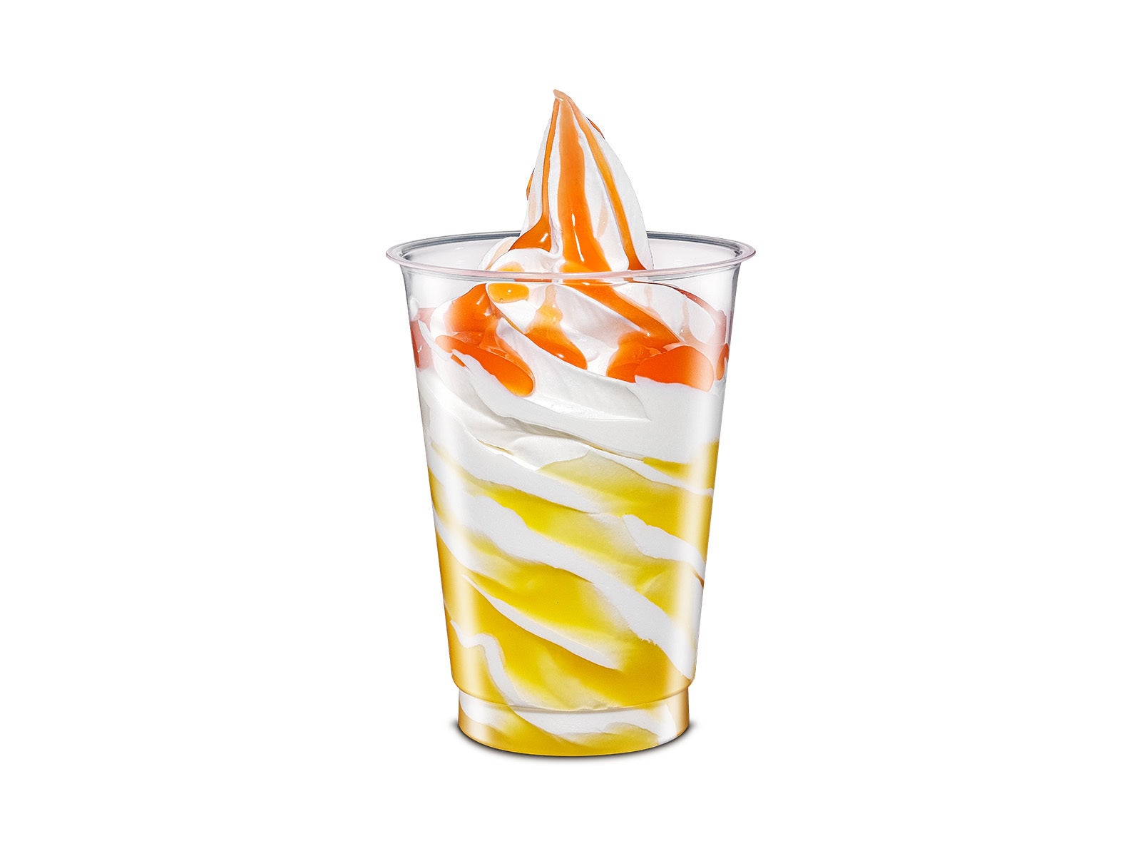 ハワイ発祥のフルーツジュースPOGをイメージしたプレミアムサンデーは、パッションフルーツ(P)、オレンジジュース(O)、グァバ(G)の3種の果実を使用し、ソフトミックスの甘さだけでなく、南国フルーツの香り、甘み、酸味が特長の夏限定のサンデーです。