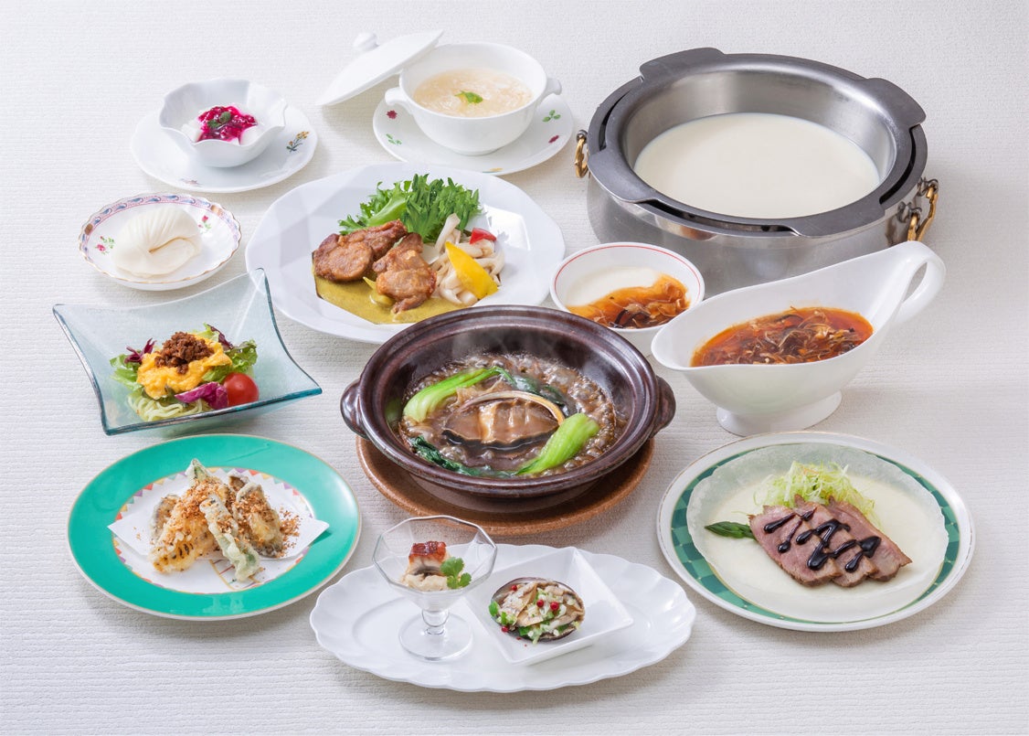 ◇鮑の翡翠ネギソース掛け ◇鰻と湯葉豆腐の中華ソース仕立て ◇冬瓜のスープ