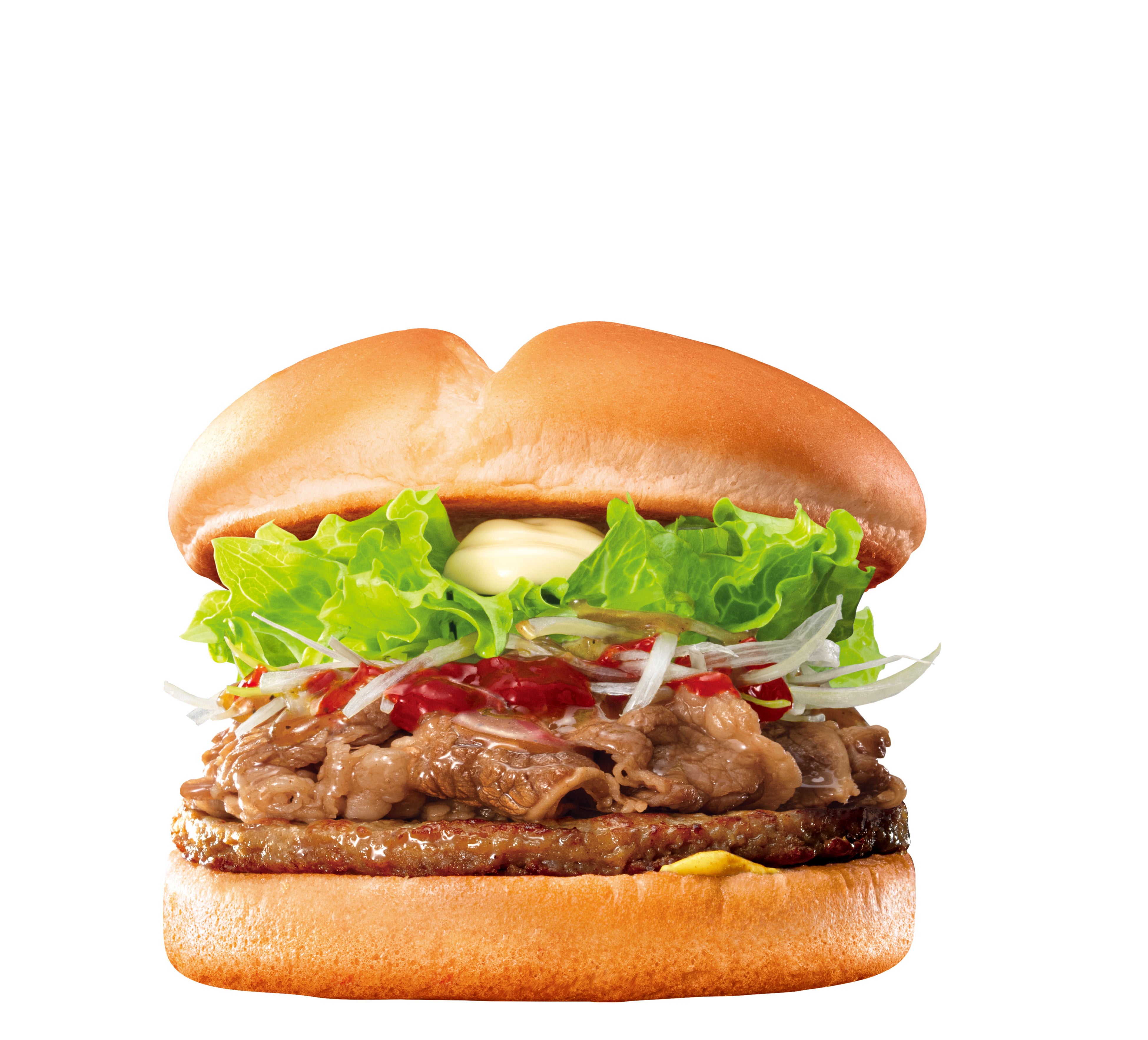 商品概要:ハンバーグパティに、レモンが香る爽やかな塩だれで味付けした牛カルビ肉をトッピングし、白髪ネギ、レタス、マスタード、マヨネーズとともにふっくらなめらかな食感のバンズで挟みました。シャキシャキ食感の白髪ネギとレモンの程よい酸味が際立つ牛カルビは相性抜群で、夏にぴったりの味わいです。