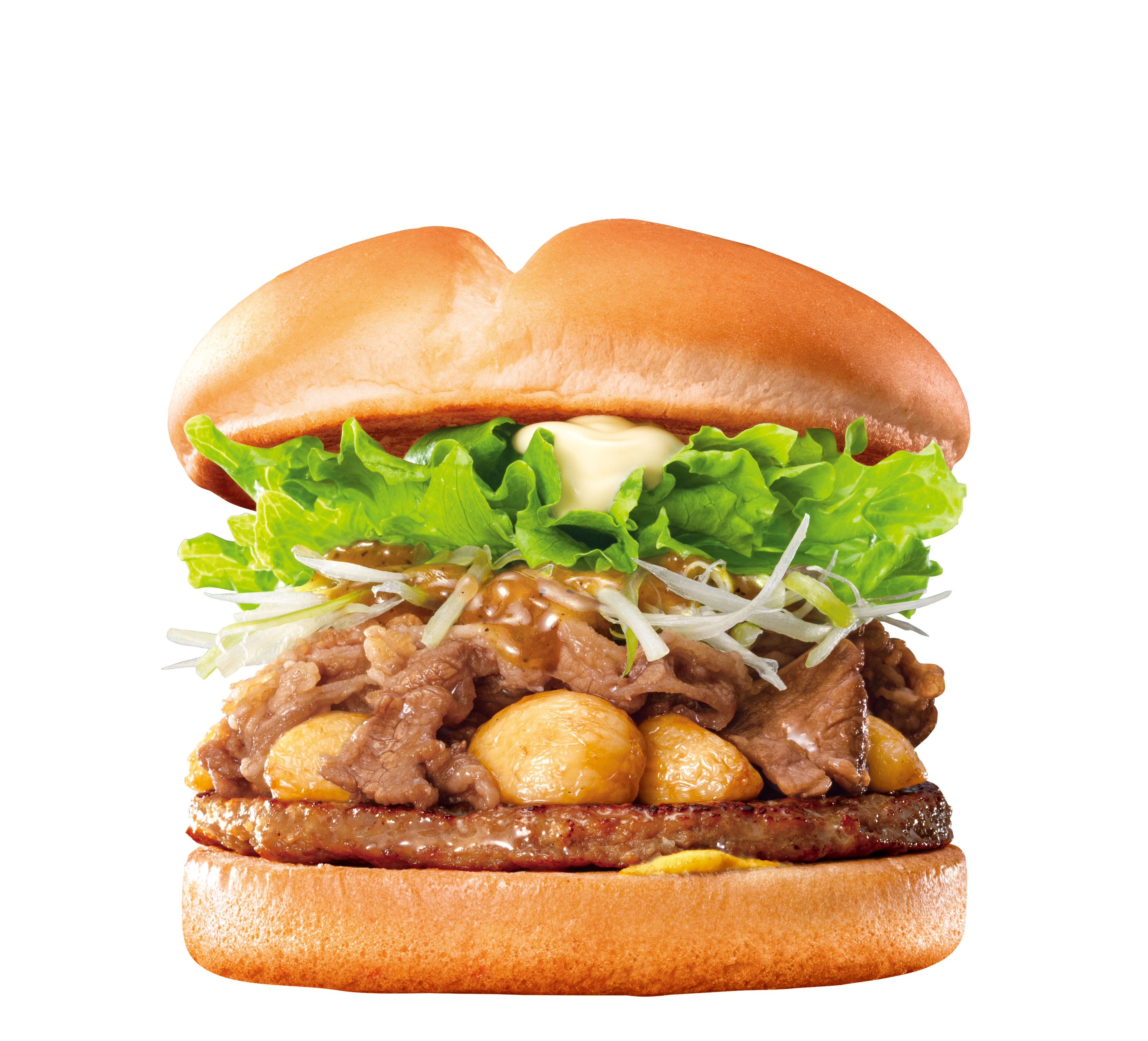 商品概要:「ネギ塩 牛カルビバーガー」に、ホクホクに揚げたニンニクをたっぷりトッピングしました。ガツンときいたニンニクの旨みと塩だれの組み合わせが食欲をそそる、スタミナ満点のバーガーです。