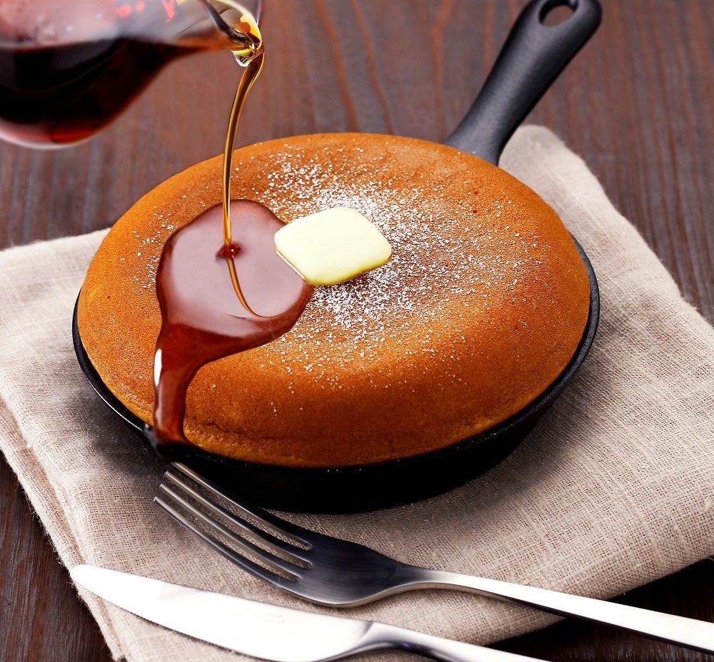 たっぷりの卵と蜂蜜を使った、しっとりふわふわの厚焼きパンケーキ。