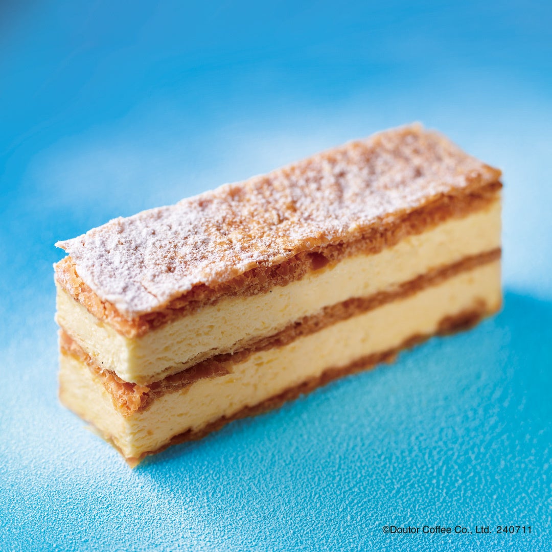 暑い季節に食べたくなるひんやりスイーツのアイスケーキが今年も登場! オリジナルのパイを3枚使用し、たまごの風味豊かなカスタード味のアイスをサンドしました。サクサク食感のパイとクリーミーなアイスがよく合う一品です。