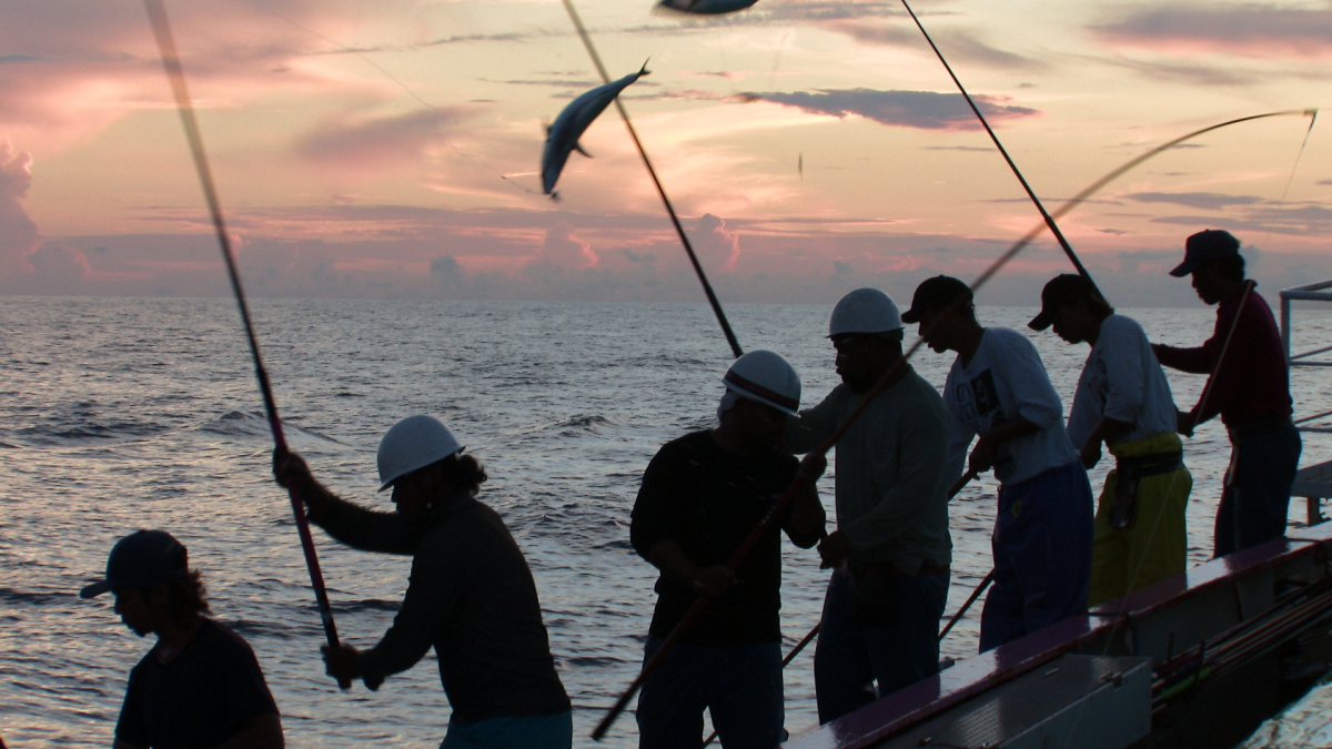 「金七鰹だし」には、大変希少な一本釣りの鰹節を使用しています。船から竿を下ろして漁師が一匹ずつ吊り上げる“一本釣り”漁は、魚体への傷みが少なく、ほとんどが刺身として食べられるほど良質です。その質の高い一本釣りの鰹で作った鰹節をたっぷりと使用した鰹だしです。