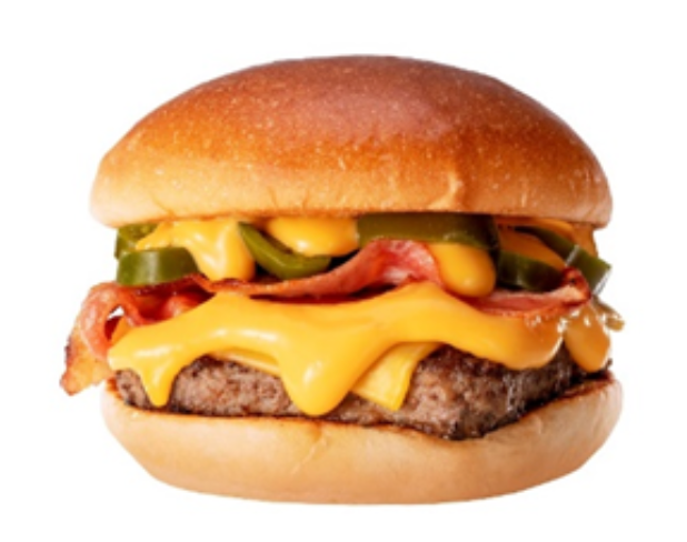 肉厚でジューシーなビーフパティとオリジナルのベーコンに、スライスハラペーニョや、とろけるチェダー&ブルーチーズを使用したハラペーニョ入りソースを組み合わせた刺激的な辛さがやみつきになる一品です。チーズソースをたっぷりサンドしているため、辛さだけでなく濃厚なチーズの味わいも楽しめる贅沢なハンバーガーです。