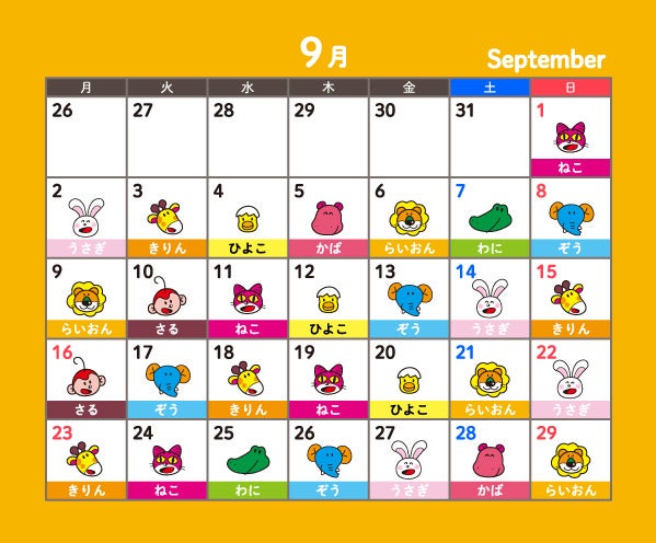 『たべっ子どうぶつLAND』の開催期間中、毎日異なるどうぶつさんが登場する「どうぶつさんスペシャルステージ」の日替わりスケジュールについて、公開中の7月分に加え、8月・9月分も一挙に公開いたします。
