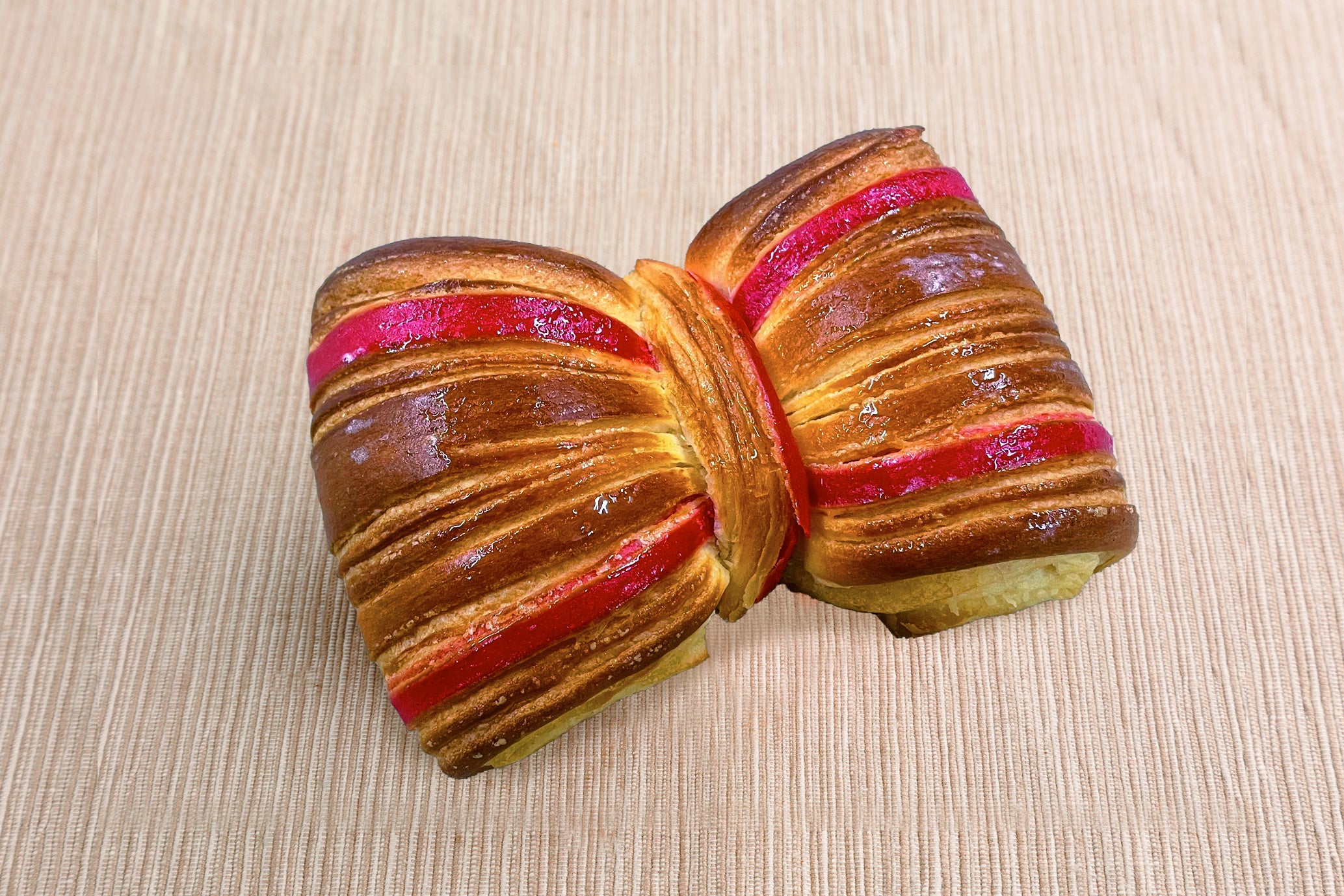 クロワッサンがストロベリー風味の生地でリボンの形に大変身♪