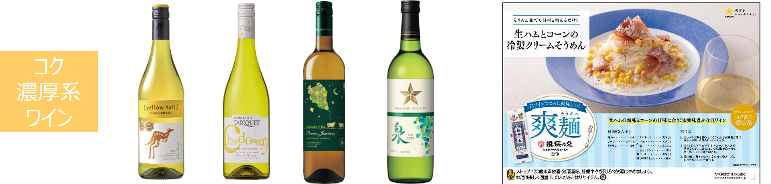 また近年、夏の白ワイントレンドが上昇傾向にあります。そこで、夏の食卓をよりお楽しみいただける当社の白ワインと揖保乃糸監修の冷たいそうめんのアレンジレシピを提案しています。