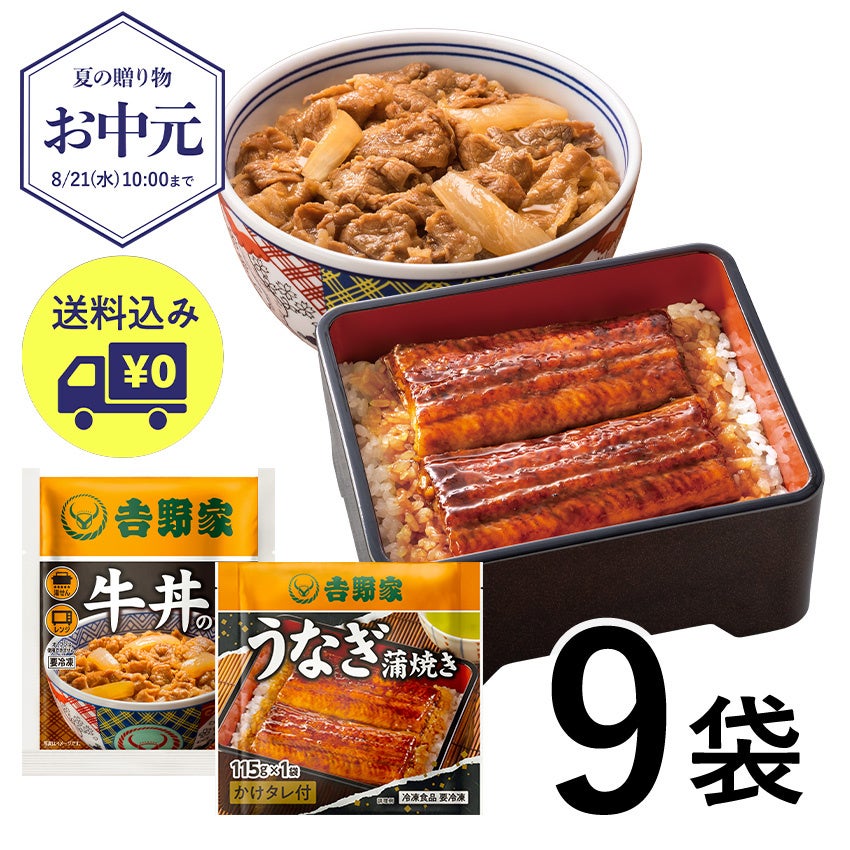 「冷凍牛丼の具6袋+うなぎ3袋セット」