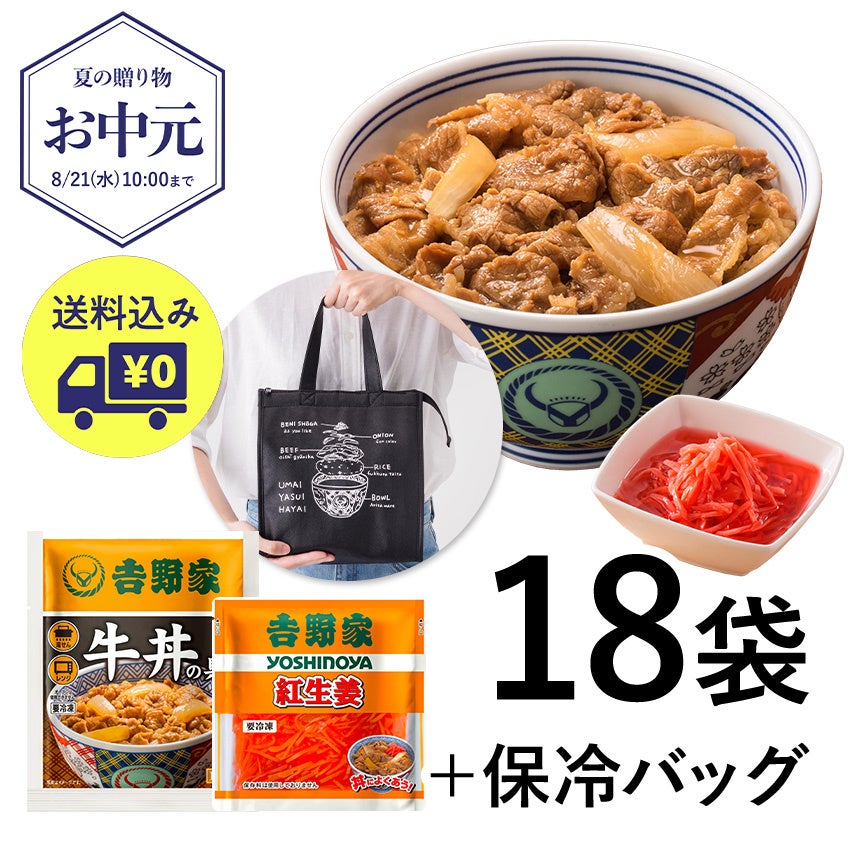 ・「冷凍牛丼の具16袋+紅生姜2袋+吉野家オリジナル保冷バッグセット」7,236円