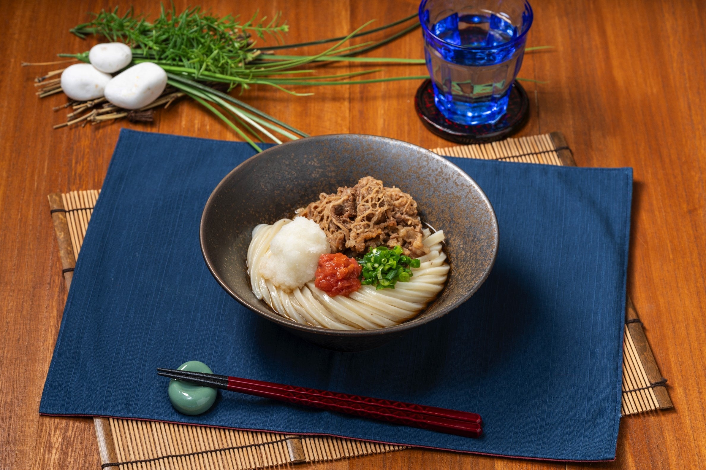 夏バテ防止にもきく梅と甘く煮込んだ牛肉のうどんと、ハモンセラーノとモッツァレラチーズ天を合わせたジェノベーゼうどんの2種を2024年7月1日(月)から8月31日(土)の期間限定で発売!