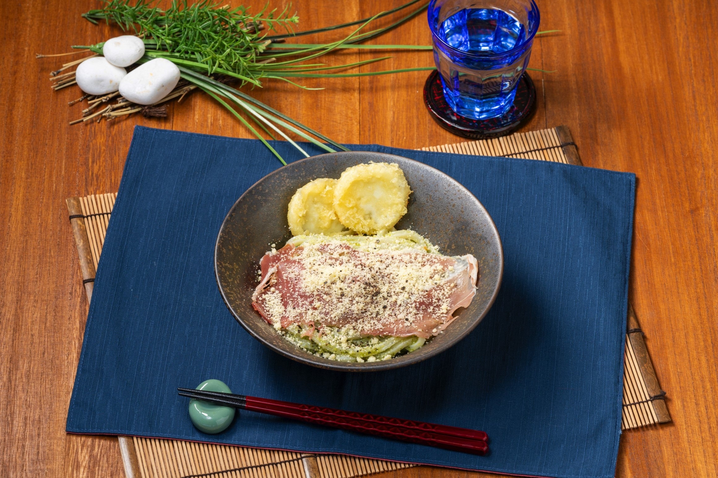 ・『モッツァレラ天と生ハムのジェノベーゼうどん』