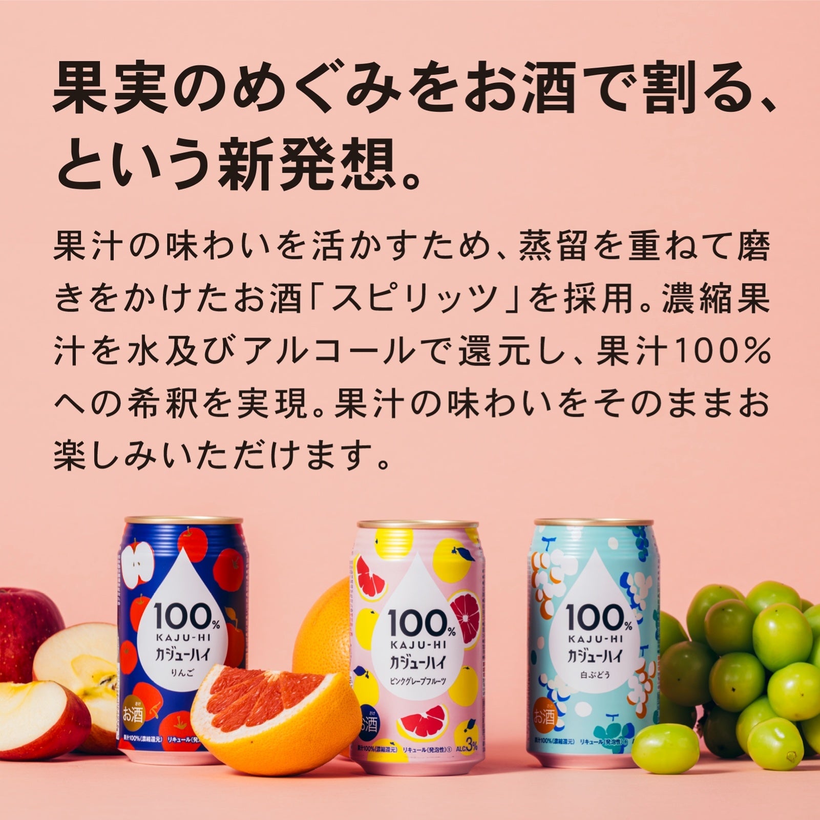 【こだわり①】果汁のめぐみ(濃縮果汁)をお酒(スピリッツ)で割るから「カジューハイ」