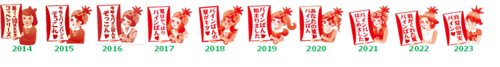 また、2014年からは『パインぱん』のキャラクターをパッケージに採用。毎年、メッセージを掲げた様々なテイストの女の子【パインぱんガール】をデザイン。実は、その年の開発担当者がモデルになることも!?パインぱんと併せて、こだわりのパッケージにもご注目ください。