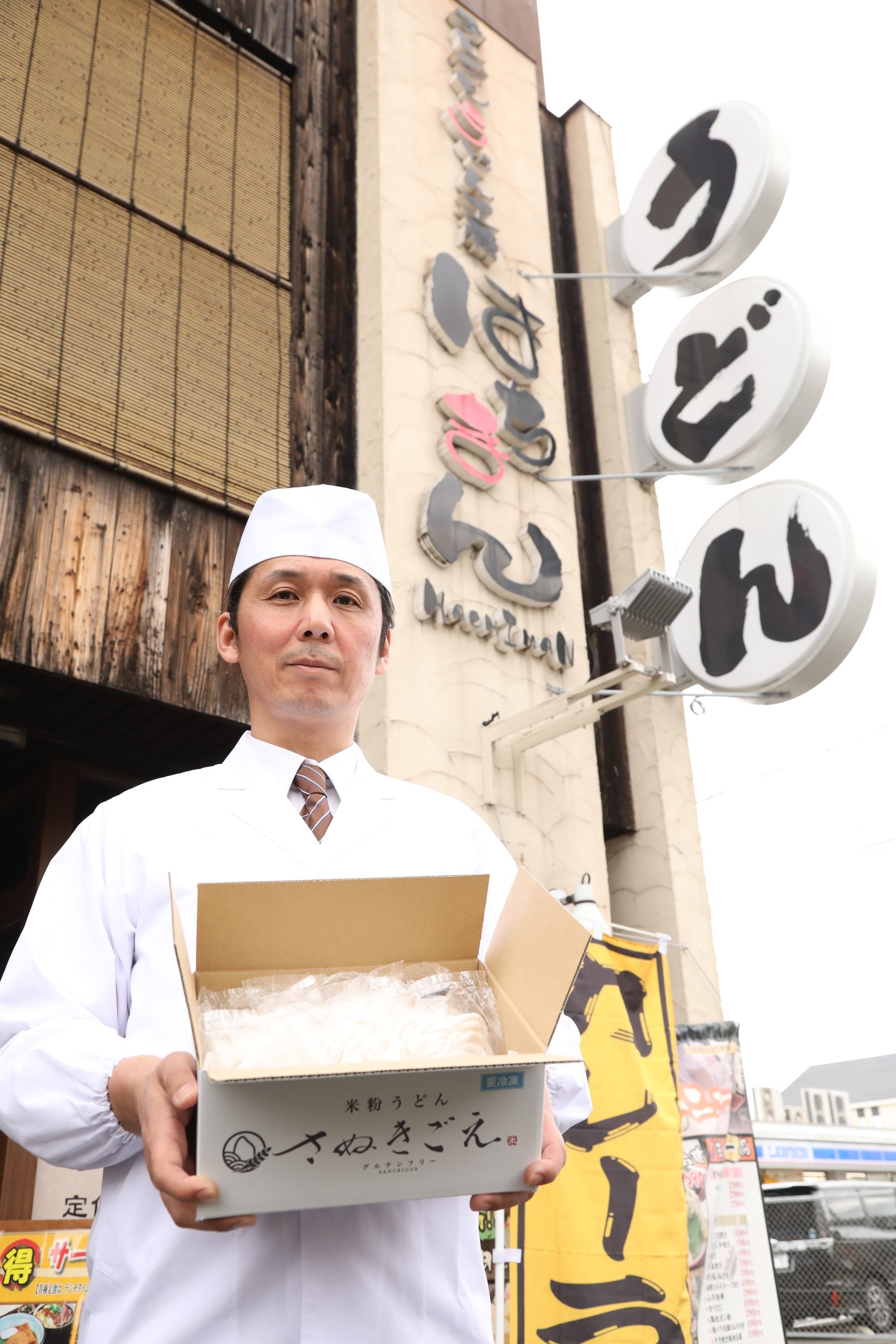 何度も何度も失敗を繰り返し試行錯誤の末、約2年の歳月をかけて独自技術『超多加水生麺製法』を編み出し、小麦のうどんのようなもちもち感やつるつるとした食感、しっかりとしたコシのある米粉うどんの開発に成功しました。